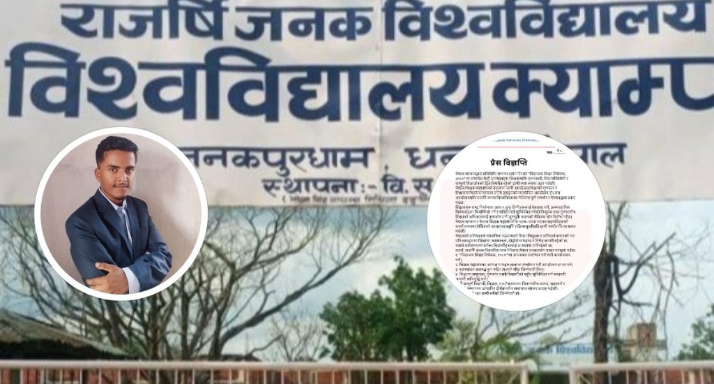 जनकपुरधाम, २९ चैत । नेपाल सरकारले प्रतिनिधि सभामा दर्ता गराएको ‘विद्यालय शिक्षा विधेयक, २०८०’ लाई लिएर मुलुकभरि चर्किएको बहस र आन्दोलनप्रति राजर्षि जनक विश्वविद्यालय नेविसंघले गम्भीर आपत्ति जनाएको छ ।