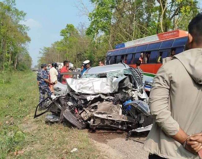 पथलैया–निजगढ सडकखण्डमा कार र ट्रिपर ठोक्किँदा दुई जनाको मृत्यु