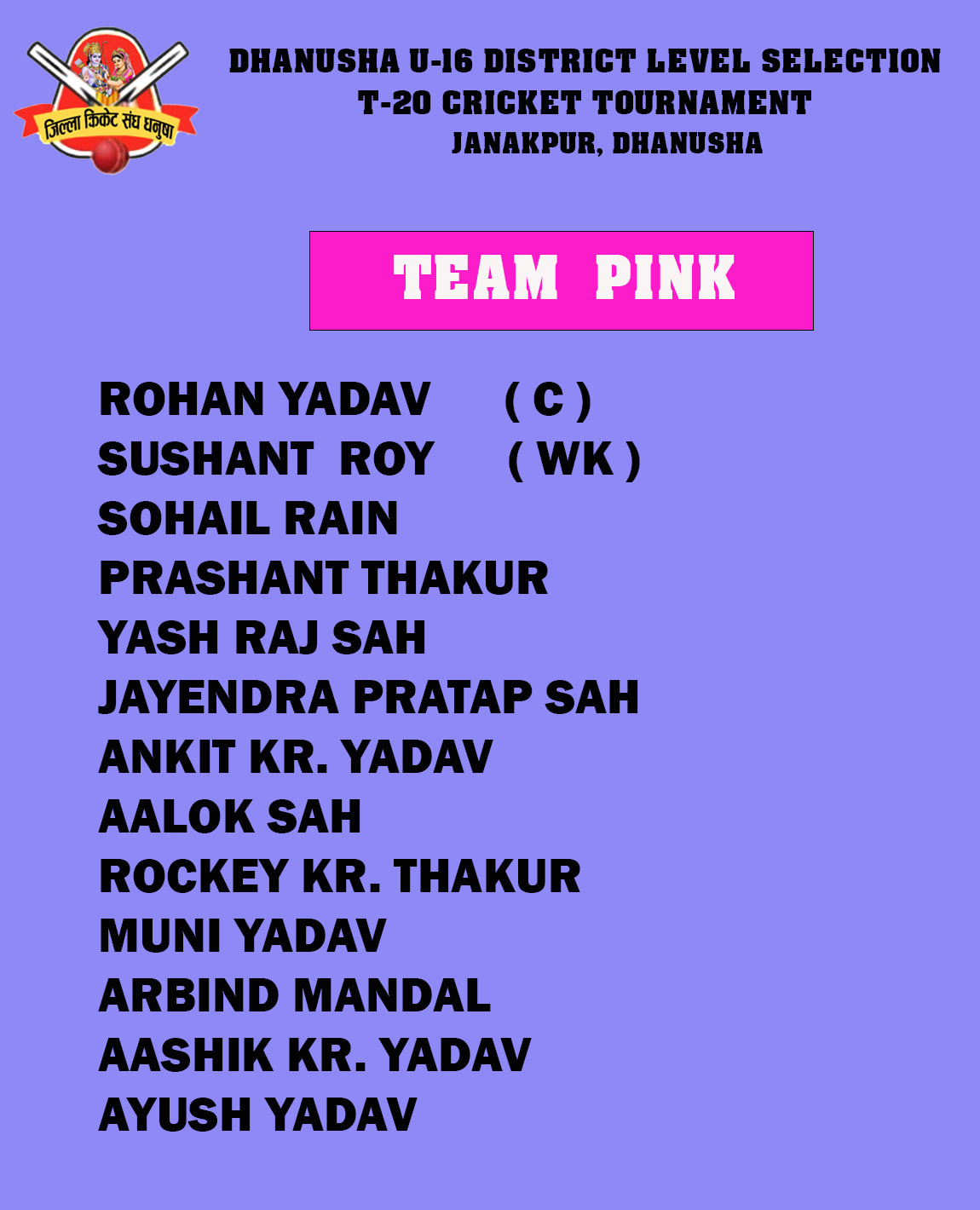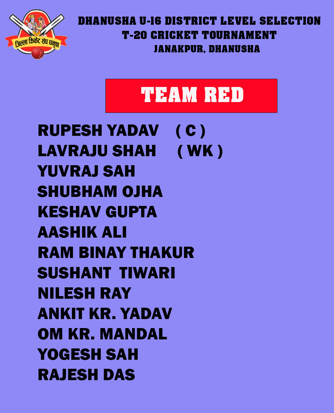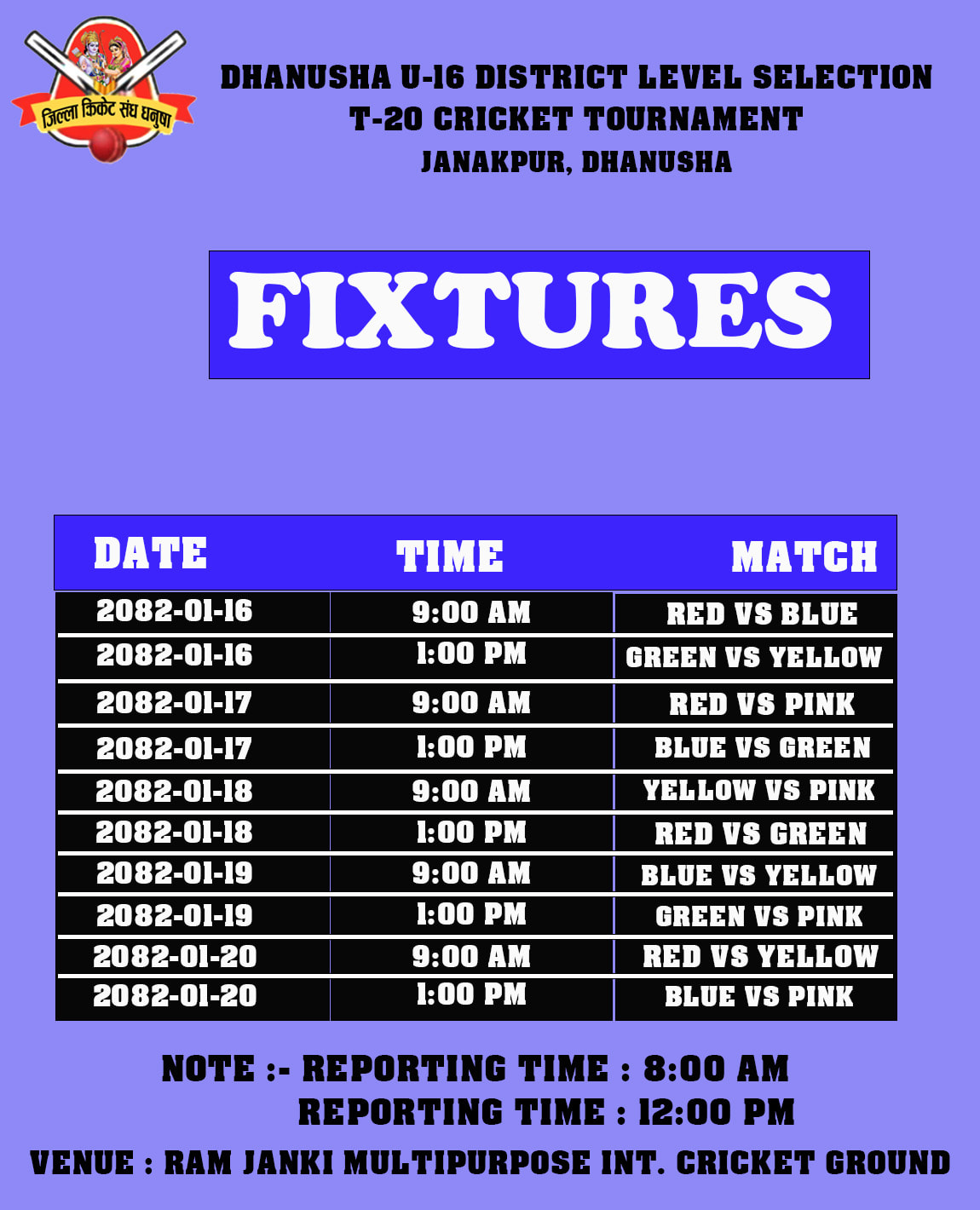 धनुषा जिल्ला क्रिकेट संघका अध्यक्ष शोभाकान्त पाण्डेका अनुसार प्रतियोगिता यू–१६ राष्ट्रिय टिम गठन प्रक्रियाको पहिलो चरणको रूपमा लिइएको छ । ‘हामीले एसिया कपको तयारीका लागि आधार बलियो बनाउने सोचका साथ जिल्ला स्तरबाट टिम छनौटको प्रक्रिया सुरु गरेका हौं,’ पाण्डेले भने ।