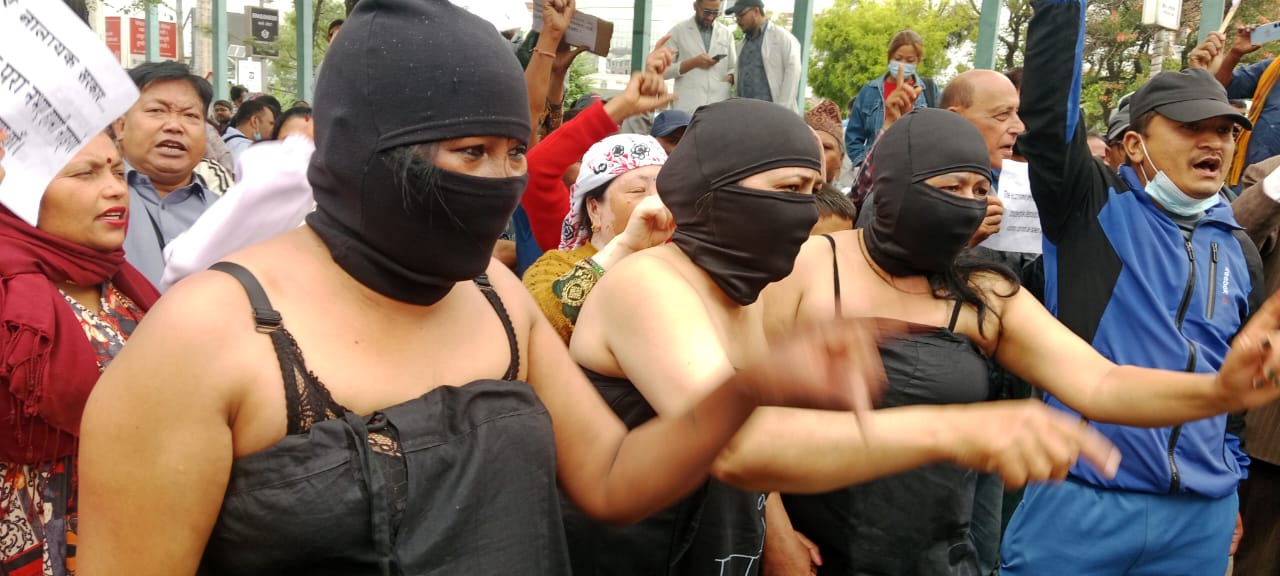 यता चैत्र २२ गते सरकारविरुद्ध रत्नपार्क, महाराजगंज र थापाथली तथा क्षेत्रपाटीमा राके जुलुस निकाल्दा २४ जना पक्राउ गरि २४ घढटा पछि छाडिए । सो पछि दैनिक रुपमै आन्दोलनकारीहरुले विरोध र्याली निकाल्दै गत वैशाख १५ गते माईतीघरमा पेटीकोट लगाएर अर्धनग्न जुलुस निकालेपछि सो जुलुस चर्चाको विषय बन्यो ।