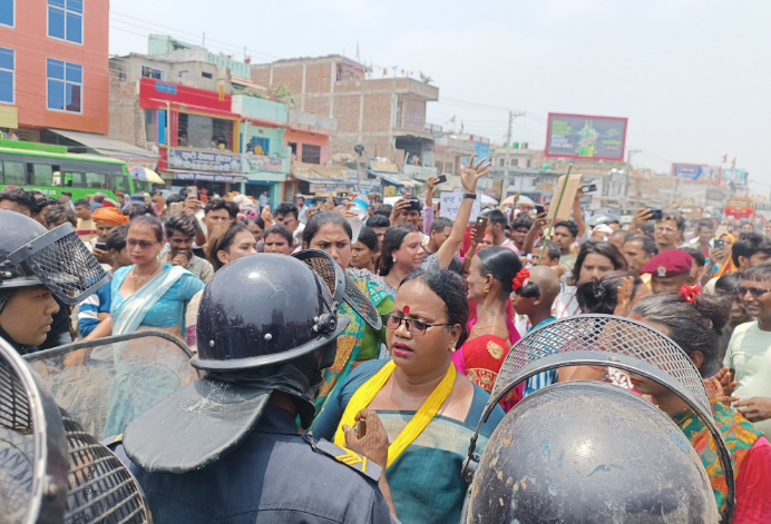 जनकपुरधाम, १ जेठ । मधेश प्रदेशको राजधानी जनकपुरधाममा एक युवकको हत्या प्रकरणमा संलग्न सम्पूर्ण दोषीलाई कारबाहीको दायरामा ल्याउन ढिलाइ भएको भन्दै यौनिक तथा लैंगिक अल्पसंख्यक समुदायले विरोध प्रदर्शन गरेका छन् । बिहीबार जनकपुरधामको प्रमुख व्यस्त क्षेत्र रामानन्द चोकमा आयोजित प्रदर्शनमा आक्रोशित समुदायले सडक अवरुद्ध गर्दै सरकार र स्थानीय प्रशासनविरुद्ध कडा नाराबाजी गरे ।
