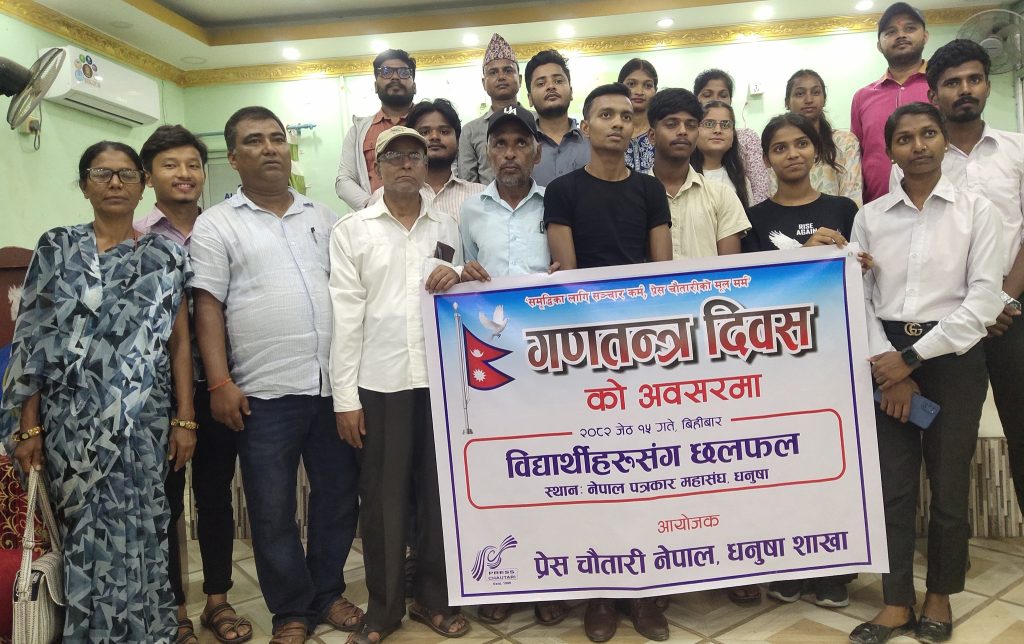 जनकपुरधाम, १५ जेठ । गणतन्त्र दिवसको अवसर पारेर प्रेस चौतारी नेपाल धनुषाले युवामाझ लोकतान्त्रिक चेतना विस्तार गर्न ‘गणतन्त्र र युवा’ विषयमा केन्द्रित विशेष छलफल कार्यक्रम आयोजना गरेको छ ।