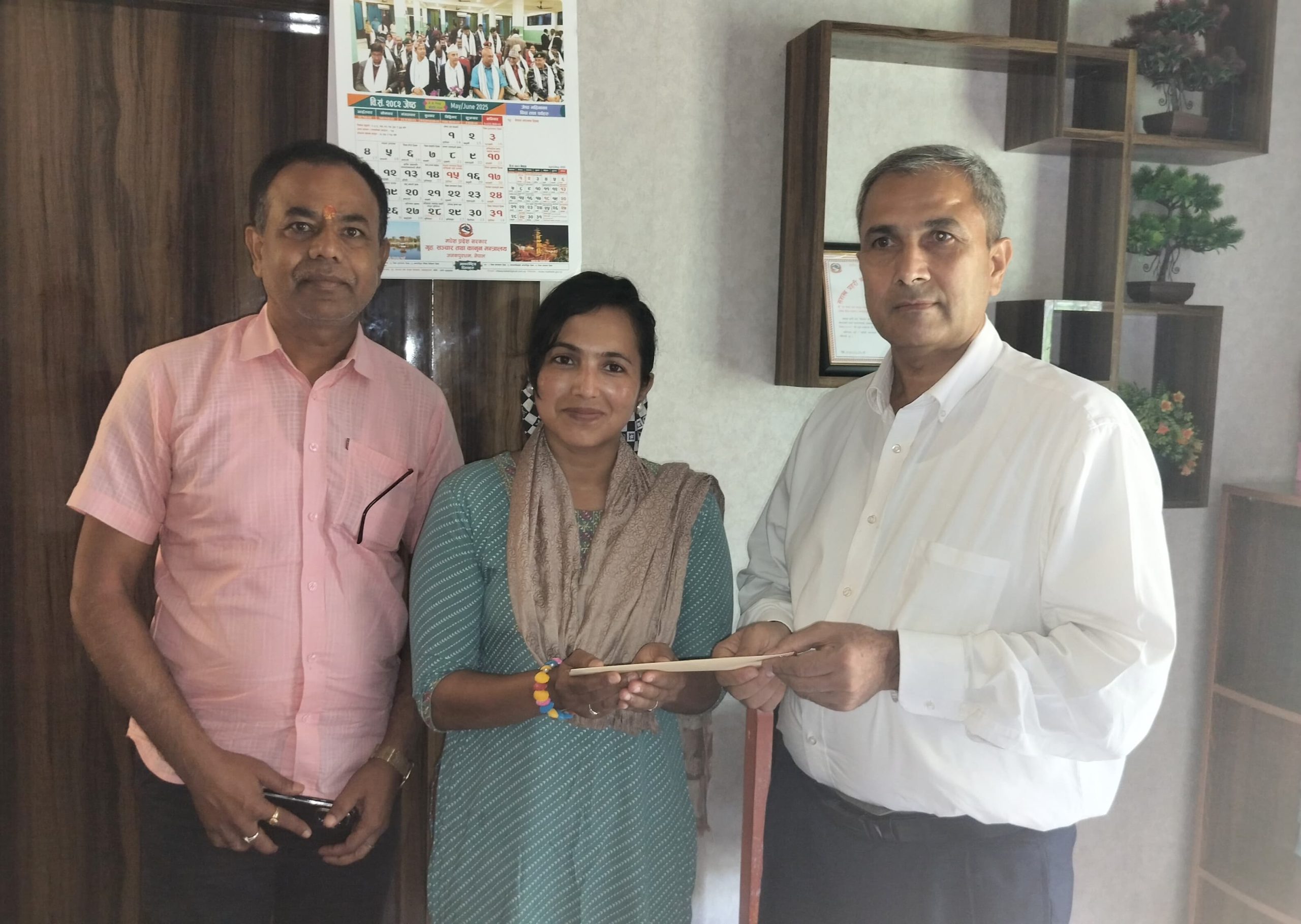 गृहसचिव विमल प्रसाद बरालले नवनियुक्त सदस्यद्वय ज्योति झा र नविन गुप्तालाई नियुक्ति पत्र हस्तान्तरण गरेका छन् । झा र गुप्ताको नियुक्तिसँगै प्राधिकरण अब पूर्ण नेतृत्व संरचनामा प्रवेश गरेको छ ।