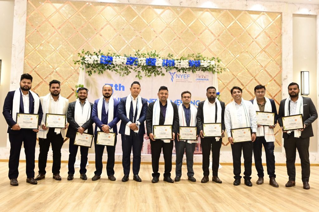 जनकपुरधाम, १२ असार । नेपालिज याङ्ग इन्टरप्रेनियर्स फोरम (एनवाईईएफ) जनकपुर च्याप्टरको पाँचौं वार्षिक साधारण सभा भव्य समारोहका साथ सम्पन्न भएको छ । सभाले नयाँ नेतृत्व चयन गर्दै आगामी वर्षलाई ‘युवा उद्यमशक्ति र नवप्रवर्तनको अभियान’ वर्षको रूपमा घोषणा गरेको छ ।
