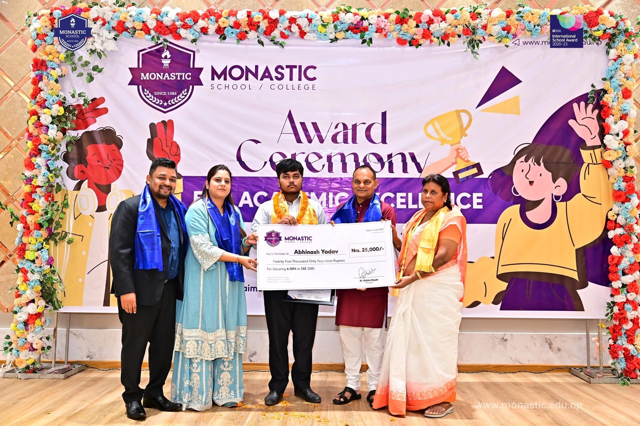 कार्यक्रममा जनता समाजवादी पार्टी नेपाल (जसपा)का मधेश प्रदेशका प्रमुख सचेतक रामअशिष यादवले पनि विद्यार्थीहरूलाई बधाई दिंदै मोनाष्टिक स्कुलमा मधेश प्रदेशमा मात्र नभई राष्ट्रिय स्तरमा पनि प्रतिस्पर्धा गर्न सक्ने क्षमता रहेको बताए । समारोहमा जनकपुरधाम उपमहानगरपालिकाका पूर्वमेयर लालकिशोर साह, स्कुलका निर्देशक डा. सोनुकुमार साह र प्रिन्सिपल शिखा नायकले विद्यार्थीहरूलाई नगद २५–२५ हजार रुपैयाँसहित संयुक्त रुपमा सम्मान गरेका थिए ।