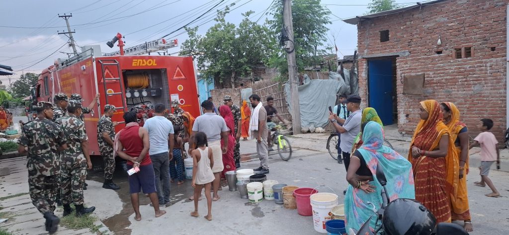 पर्सा, १ साउन । पर्सा जिल्लामा गहिरिँदो खानेपानी अभावलाई सम्बोधन गर्न जिल्ला प्रशासन कार्यालयले आपतकालीन वितरण सुरु गरेको छ । मधेश प्रदेश सरकारबाट उपलब्ध ट्याङ्करहरूको सहयोगमा नेपाली सेनाको श्रीजंग गण, पर्सा परिचालित भई प्रभावित क्षेत्रमा पानी पुर्याउने कार्यमा खटिएको हो ।