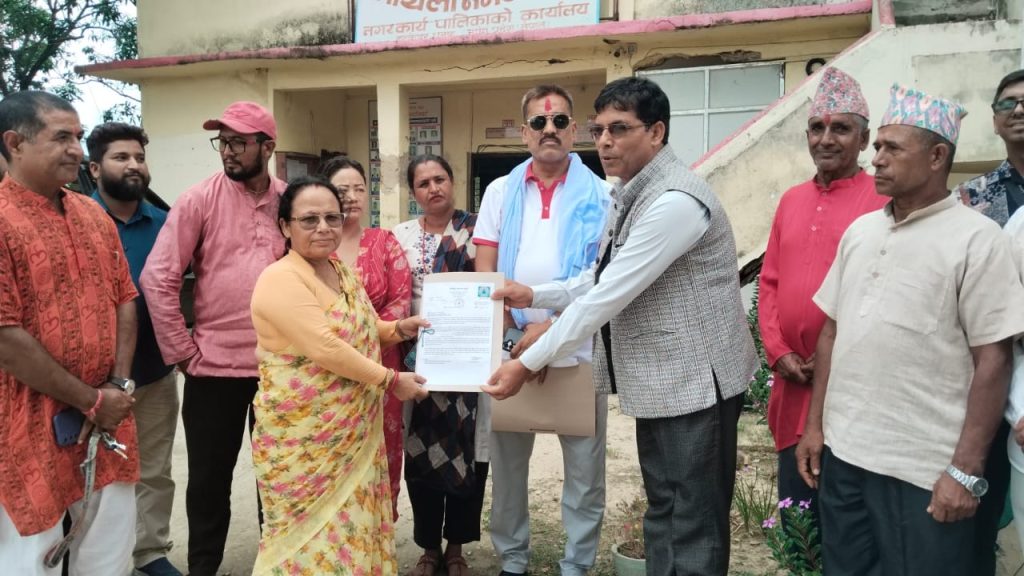 सोमबार रास्वपाको नगर समिति अध्यक्ष विजयकुमार साहको नेतृत्वमा गएको प्रतिनिधिमण्डलले नगर प्रमुख महेन्द्र महतो र उपप्रमुख सुनिता सिंह बुढाथोकीलाई ज्ञापनपत्र बुझाउँदै बजेट प्रक्रियामा तत्काल प्रवेश गर्न माग गरेको हो ।