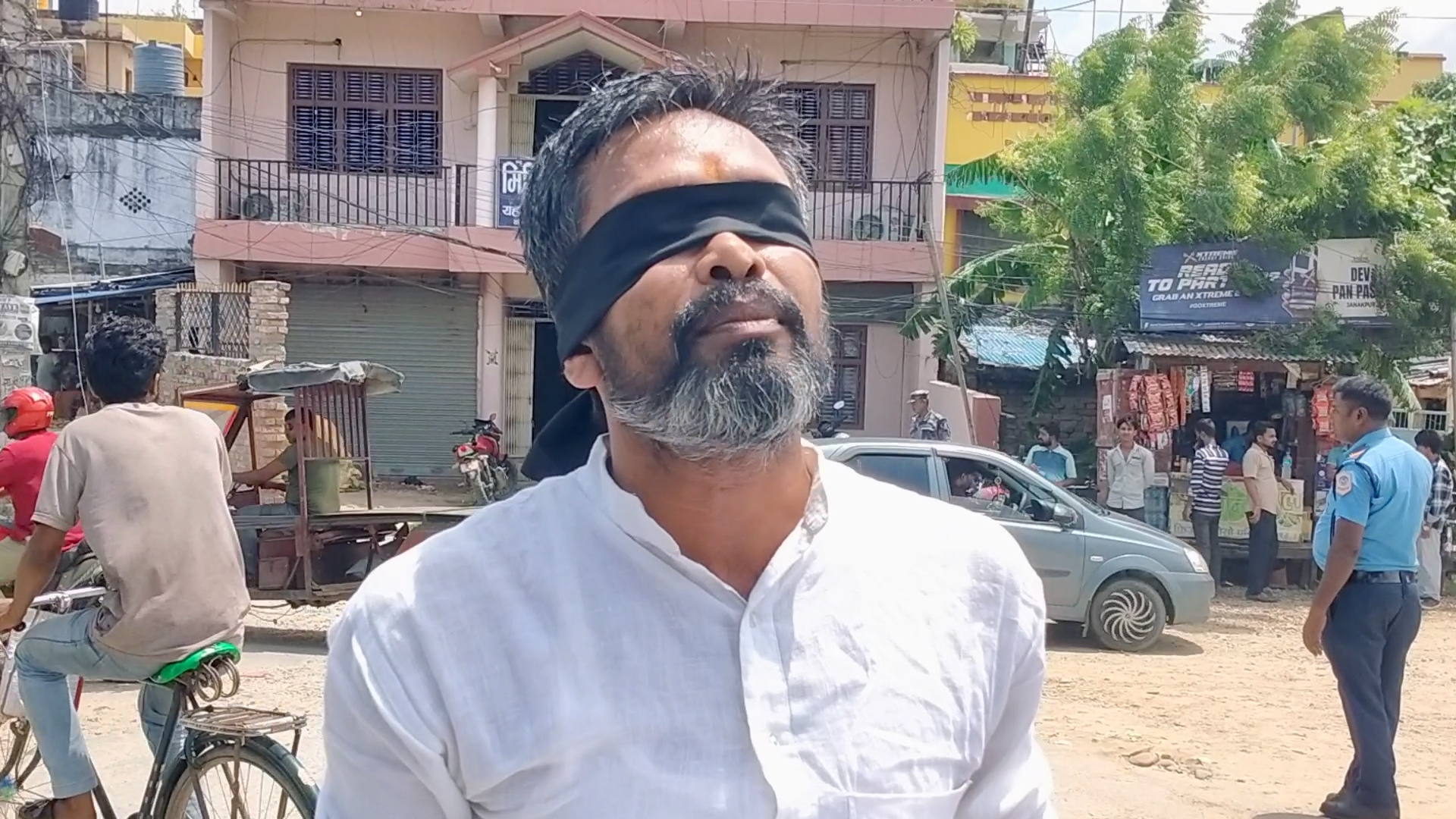यादवले आँखामा कालोपट्टी बाँधेर जनकपुरधामका प्रमुख चोकहरू जनक चोक, भानु चोक, मिल्स एरिया हुँदै मुख्यमन्त्री कार्यालयसम्म परिक्रमा गर्दै विरोध प्रदर्शन गरेका हुन् ।