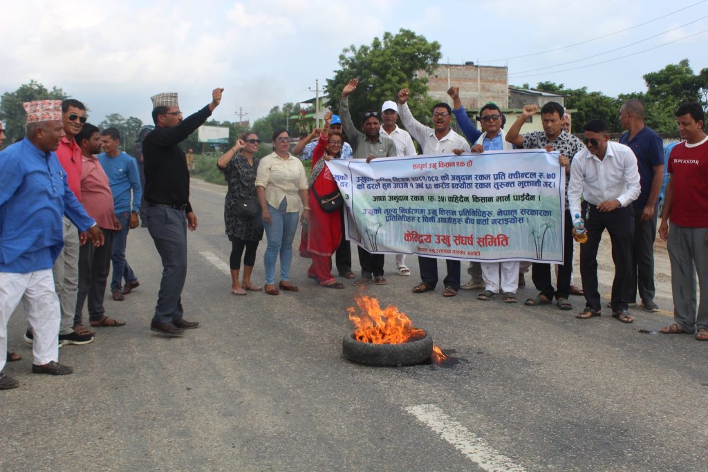 चिनी मिलअगाडि टायर बालेर प्रदर्शन