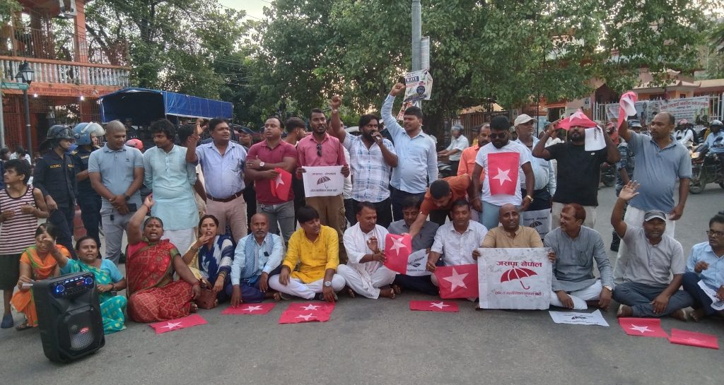 पार्टी अध्यक्ष उपेन्द्र यादवलाई योजनाबद्ध रूपमा फसाउन खोजिएको आरोप लगाउँदै जसपा नेता–कार्यकर्ताहरू देशभर सडकमा उत्रिएका हुन् ।