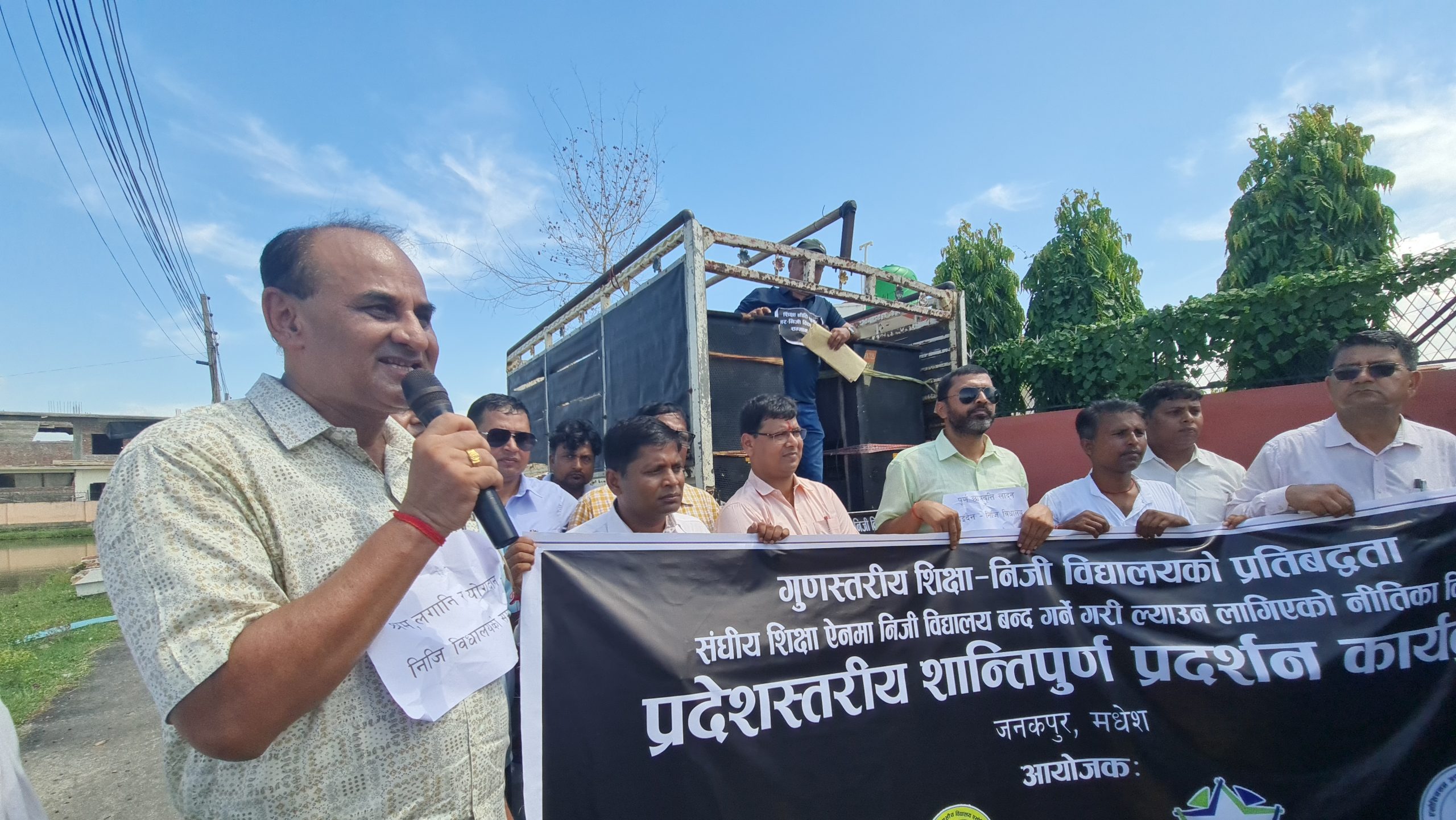 कार्यक्रममा सम्बोधन गर्दै प्याब्सन मधेश प्रदेश अध्यक्ष गणेश साहले हालको विधेयक निजी विद्यालयहरूको अस्तित्वमै खतरा हुने खालको रहेको भन्दै त्यसको विरोधमा सडकमा उत्रिन बाध्य भएको बताए । उनले भने, ‘निजी विद्यालयहरूलाई पाँच वर्षभित्र गैरनाफामूलक शैक्षिक गुठीमा रूपान्तरण गर्नुपर्ने प्रावधान लगानीकर्तालाई हतोत्साहित गर्ने षड्यन्त्र हो ।’