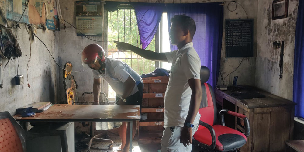 जलेश्वर ट्राफिक प्रहरी चौकीमा आगजनी