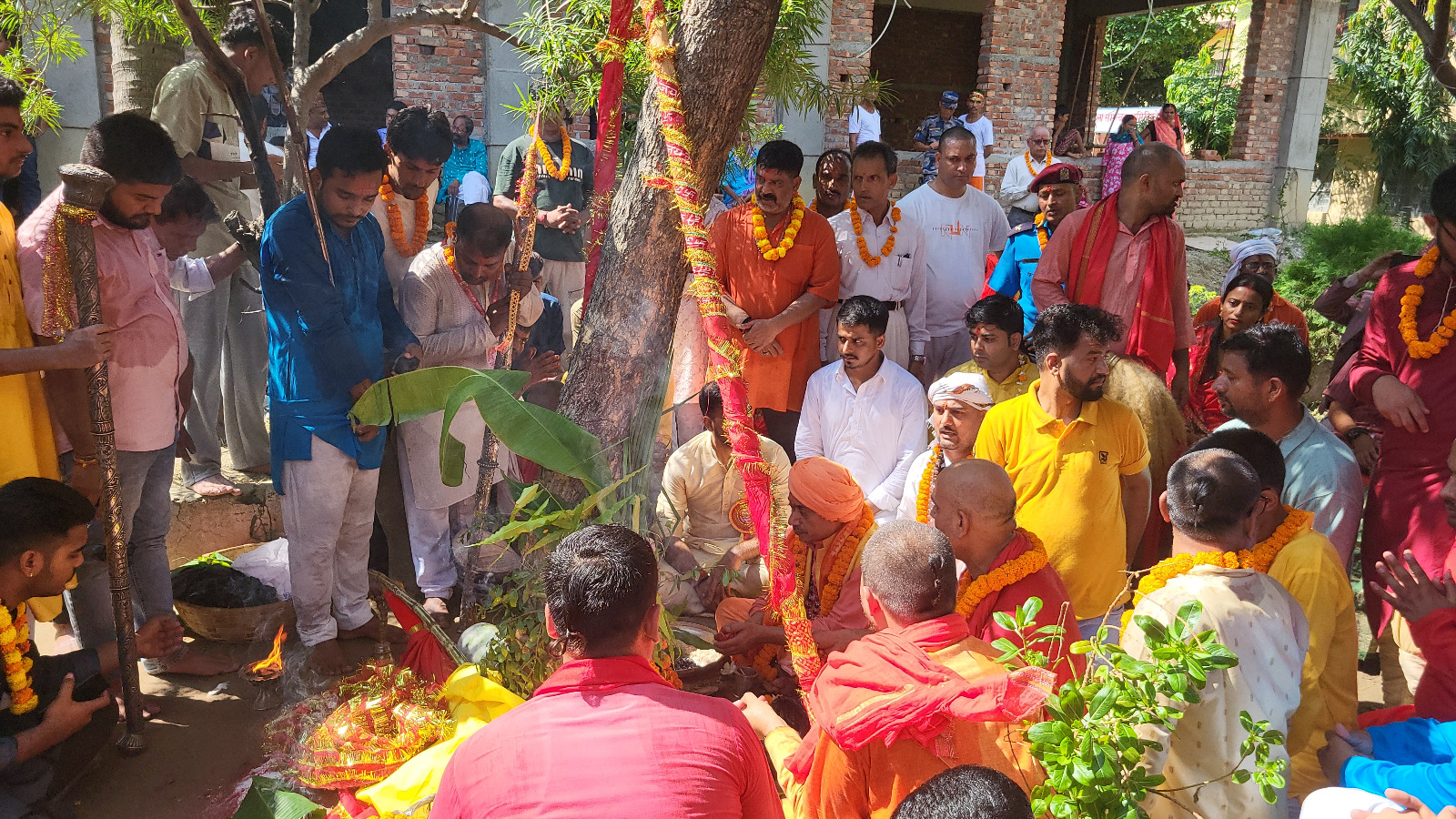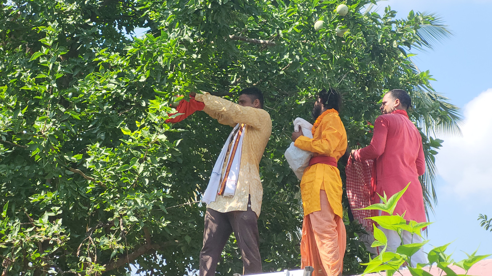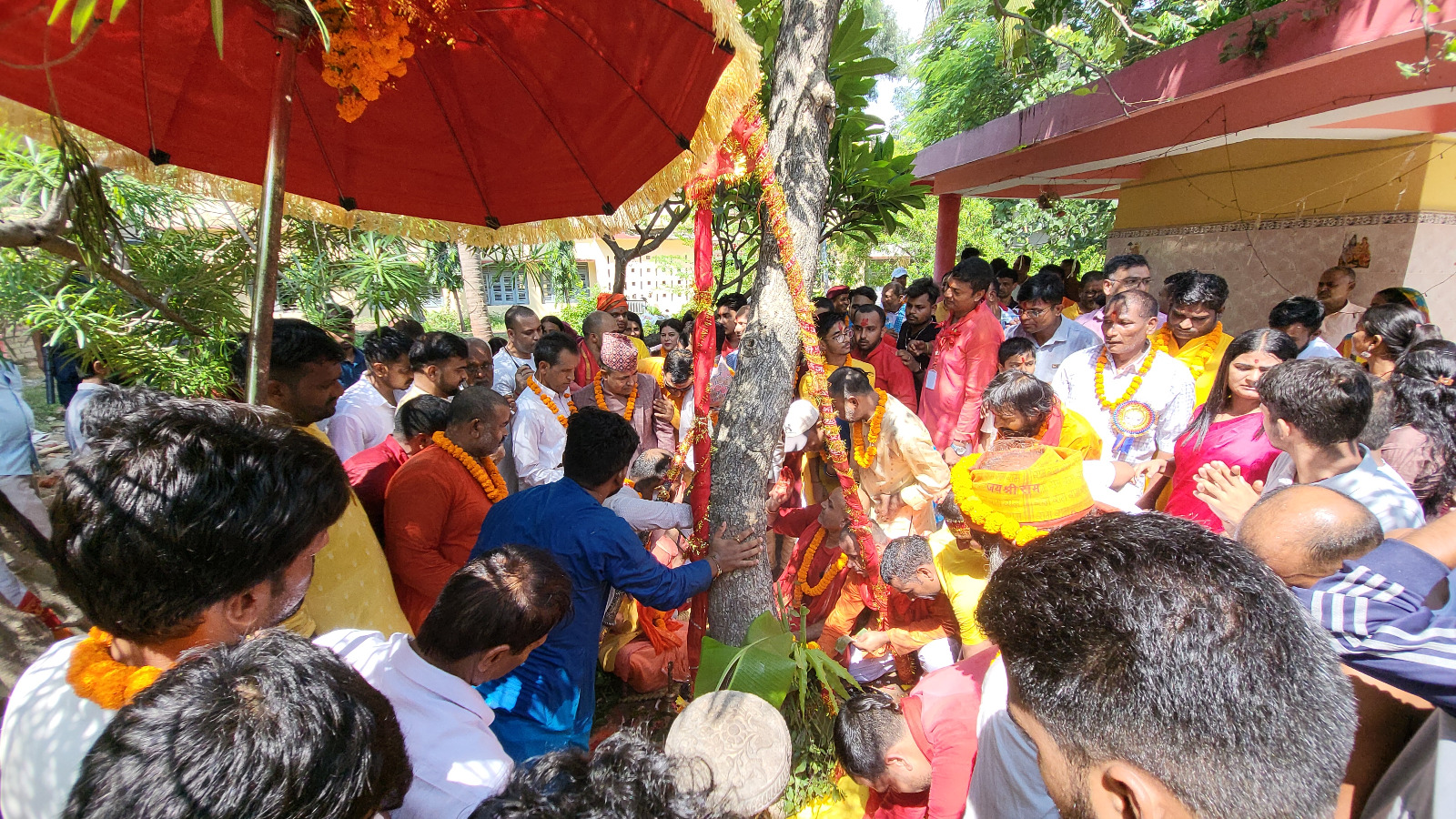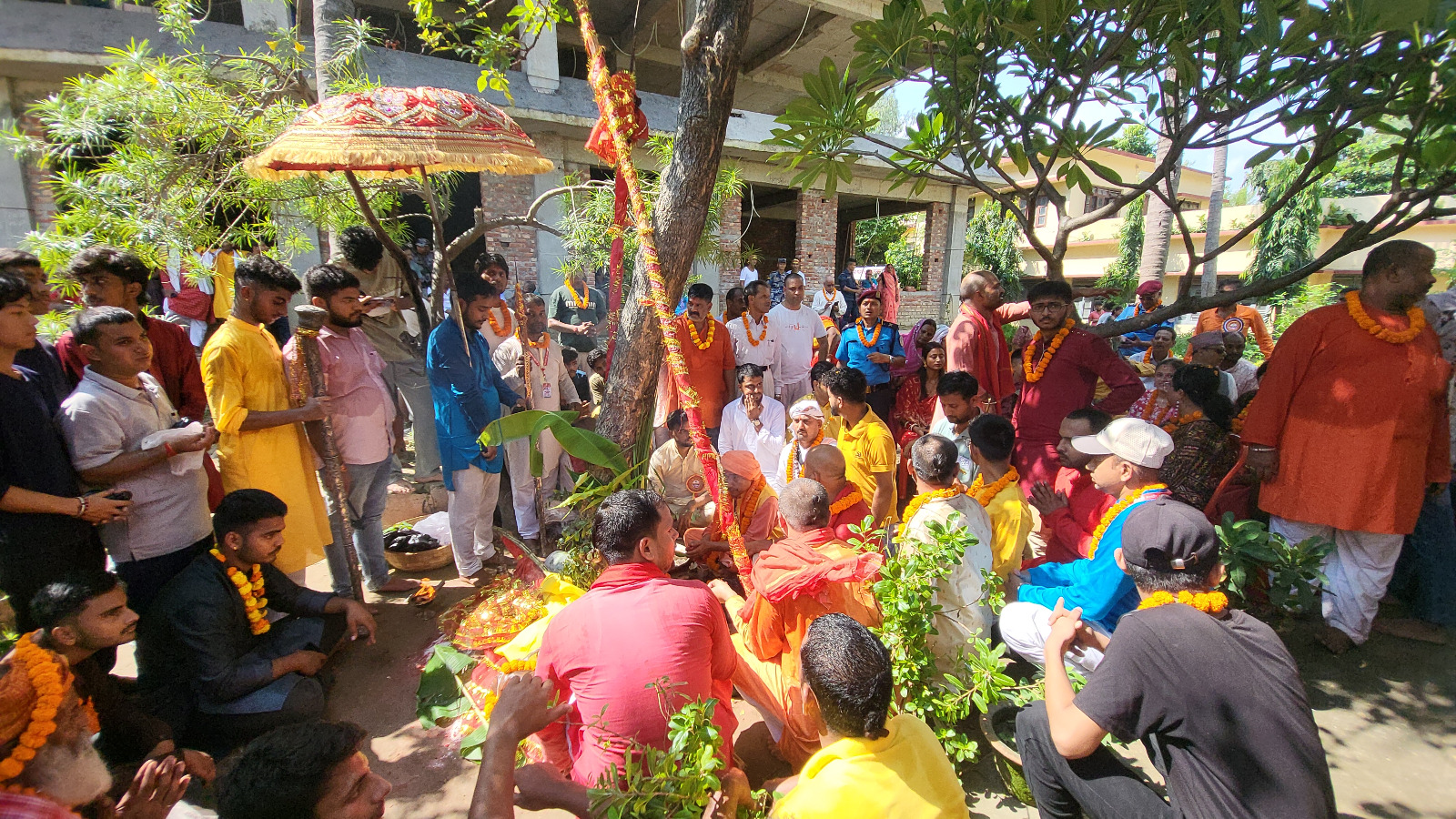 महन्थ राम गिरिको नेतृत्वमा निस्किएको बाजागाजा सहितको भक्तजनहरूको समूहले बेलको रुख मुनि गई हिन्दू परम्परा अनुसार पूजा अर्चना गरेको थियो । पूजा सम्पन्न भएपछि निम्त्याइएको बेलको फल टिपेर राजदेवी मन्दिरमा ल्याइएको छ ।