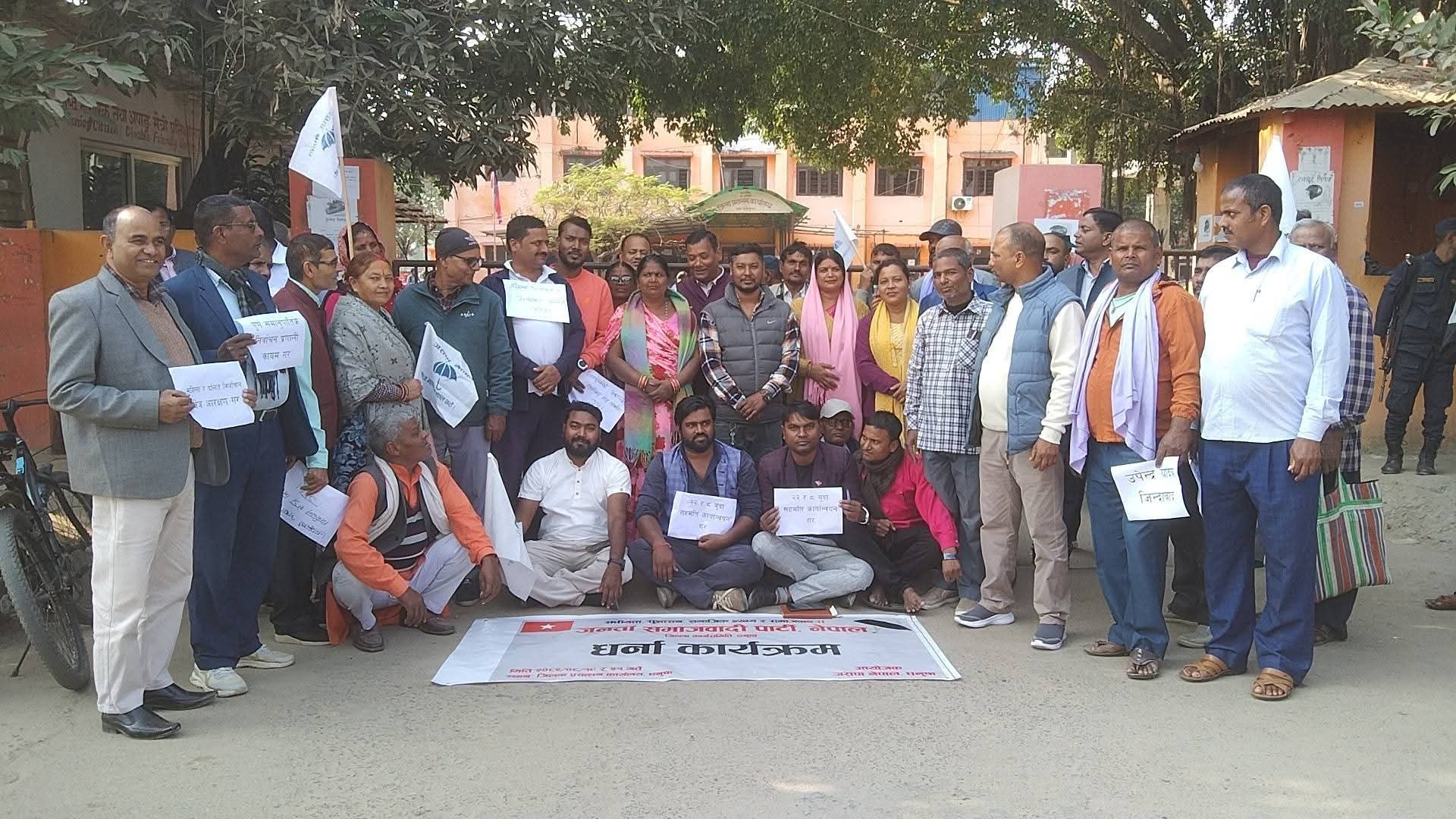 धनुषामा जसपाद्वारा शान्तिपूर्ण धर्ना, संविधान संशोधनदेखि कृषि समस्यासम्म १० बुँदे माग