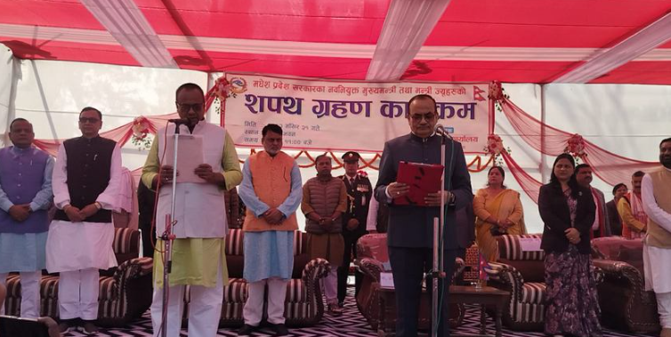 प्रदेश प्रमुख डा. सुरेन्द्र लाभ कर्णले प्रदेश सरकारको नेतृत्व सम्हाल्न उनीमाथि जिम्मा तोक्दै मैथिली भाषामै पद तथा गोपनीयताको शपथ गराएका हुन् ।