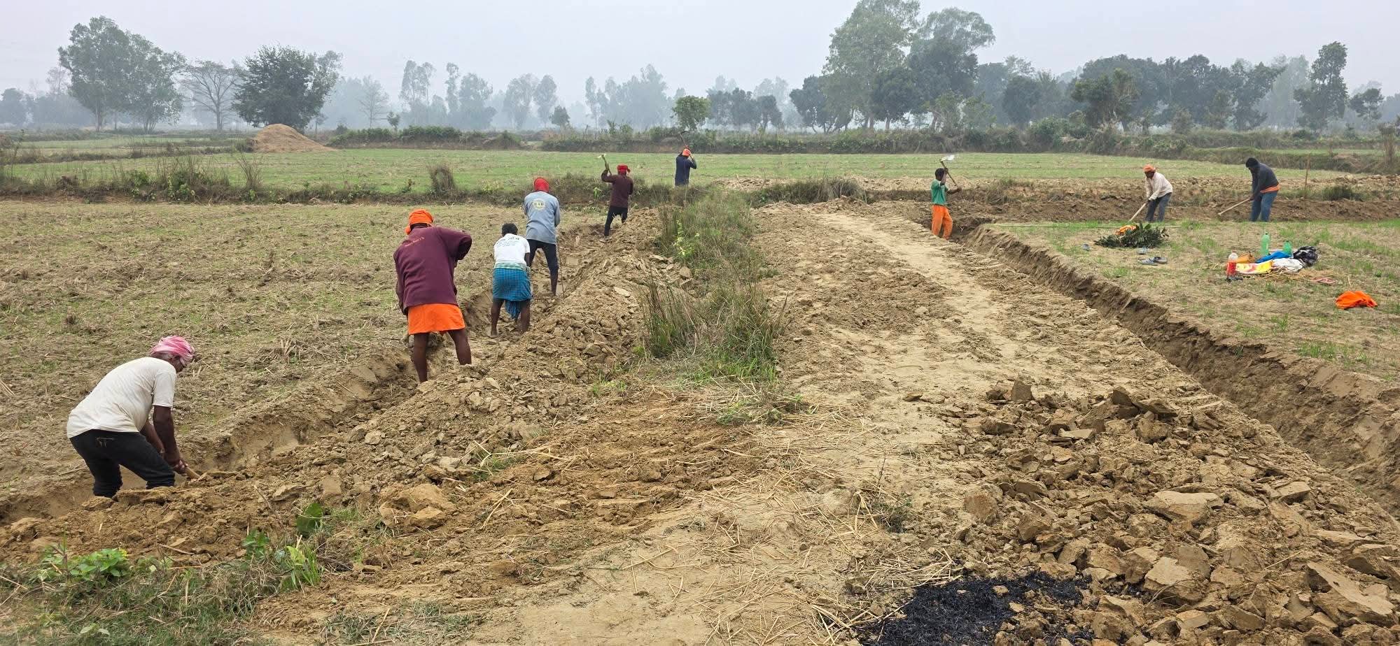 जनकपुरधाम, ८ पुष । महोत्तरी गाउँपालिका–३ स्थित डाम्ही टोलमा प्रधानमन्त्री रोजगार कार्यक्रमअन्तर्गत स्थानीय श्रमिकहरूको सहभागितामा कृषि सडक निर्माण कार्य तीव्र रूपमा अघि बढिरहेको छ ।