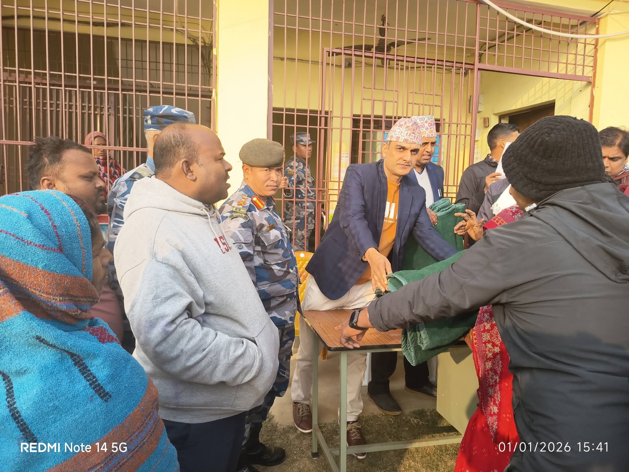 जनकपुरधाम, १७ पुष । जिल्ला विपद् व्यवस्थापन समितिको पहलमा धनुषामा बिहीबार लक्षित विपन्न, असहाय तथा अशक्त नागरिकहरूलाई कम्मल र दाउरा बितरण गरिएको छ ।