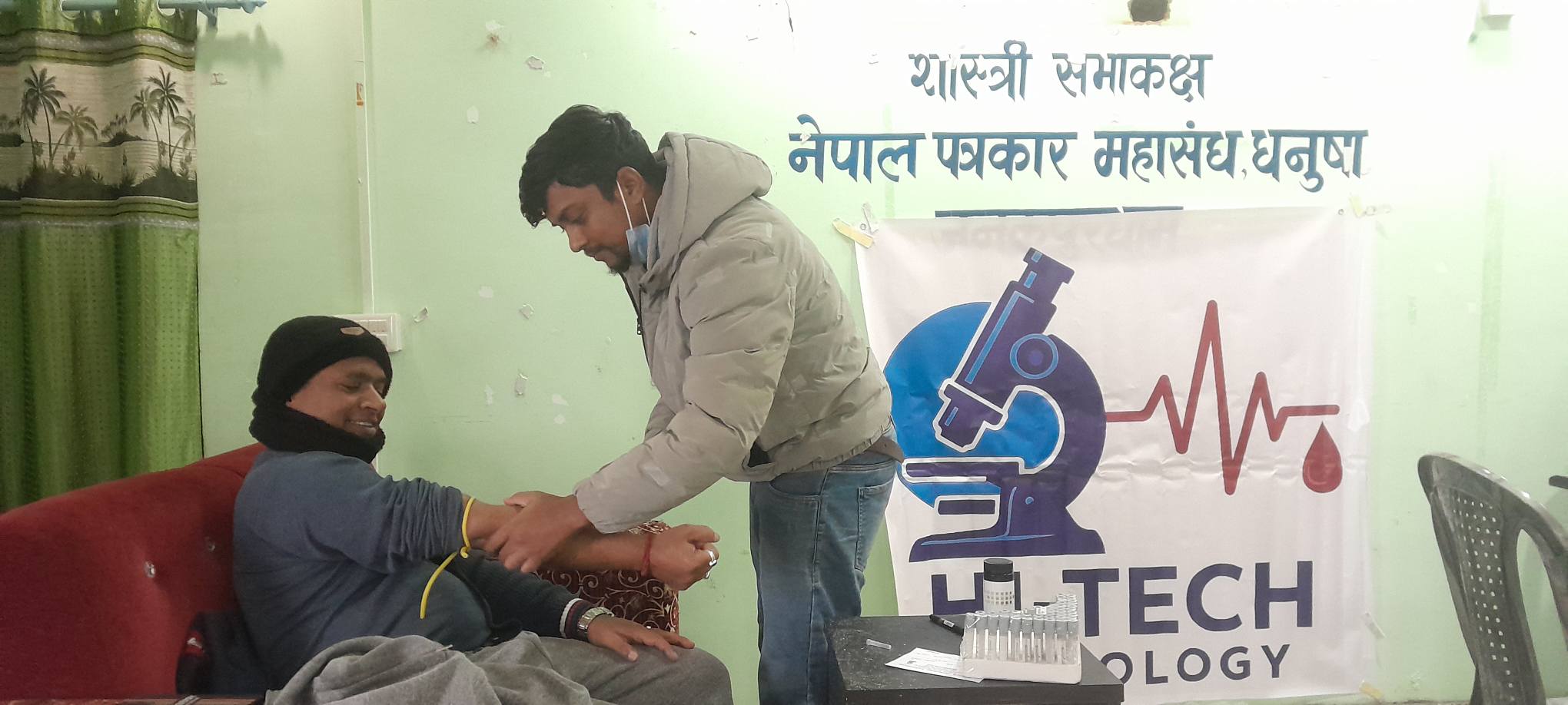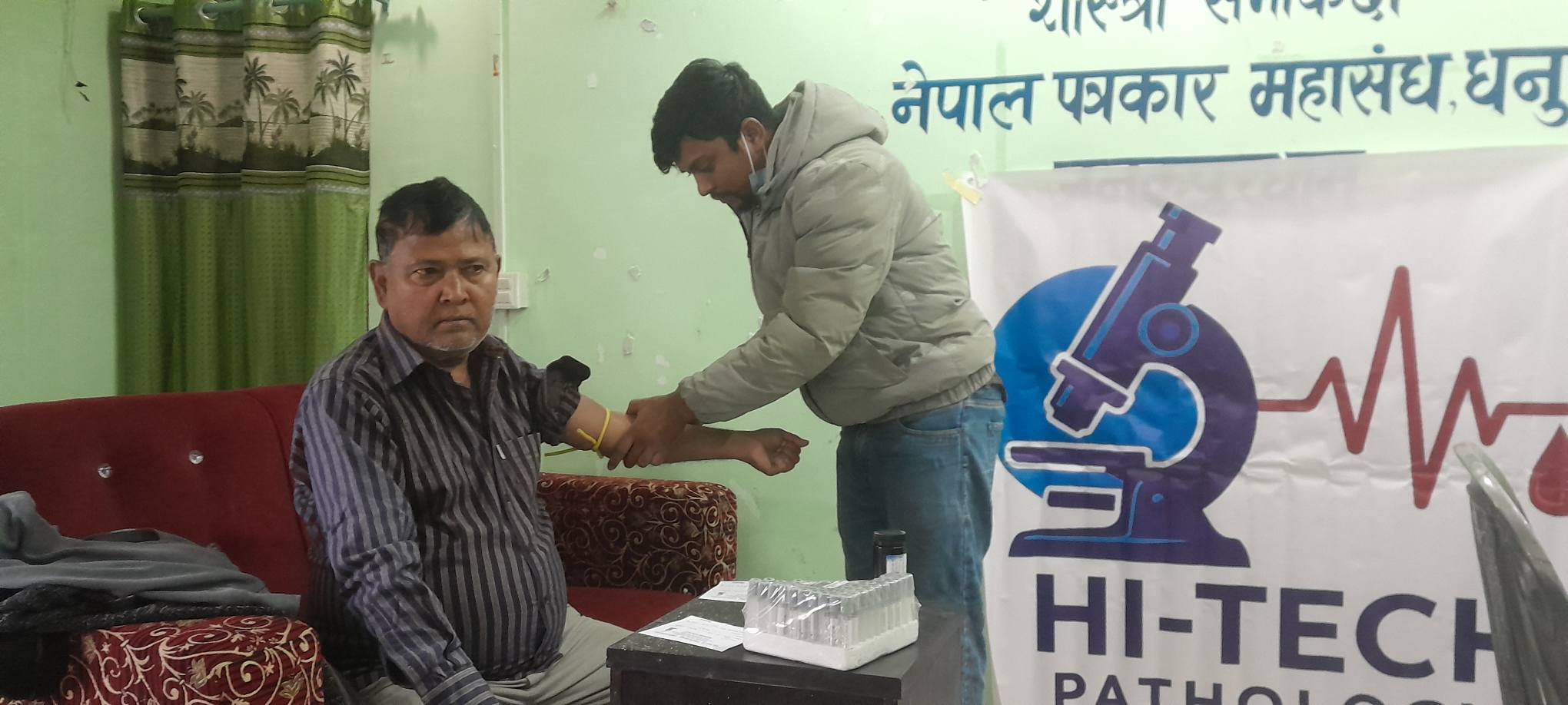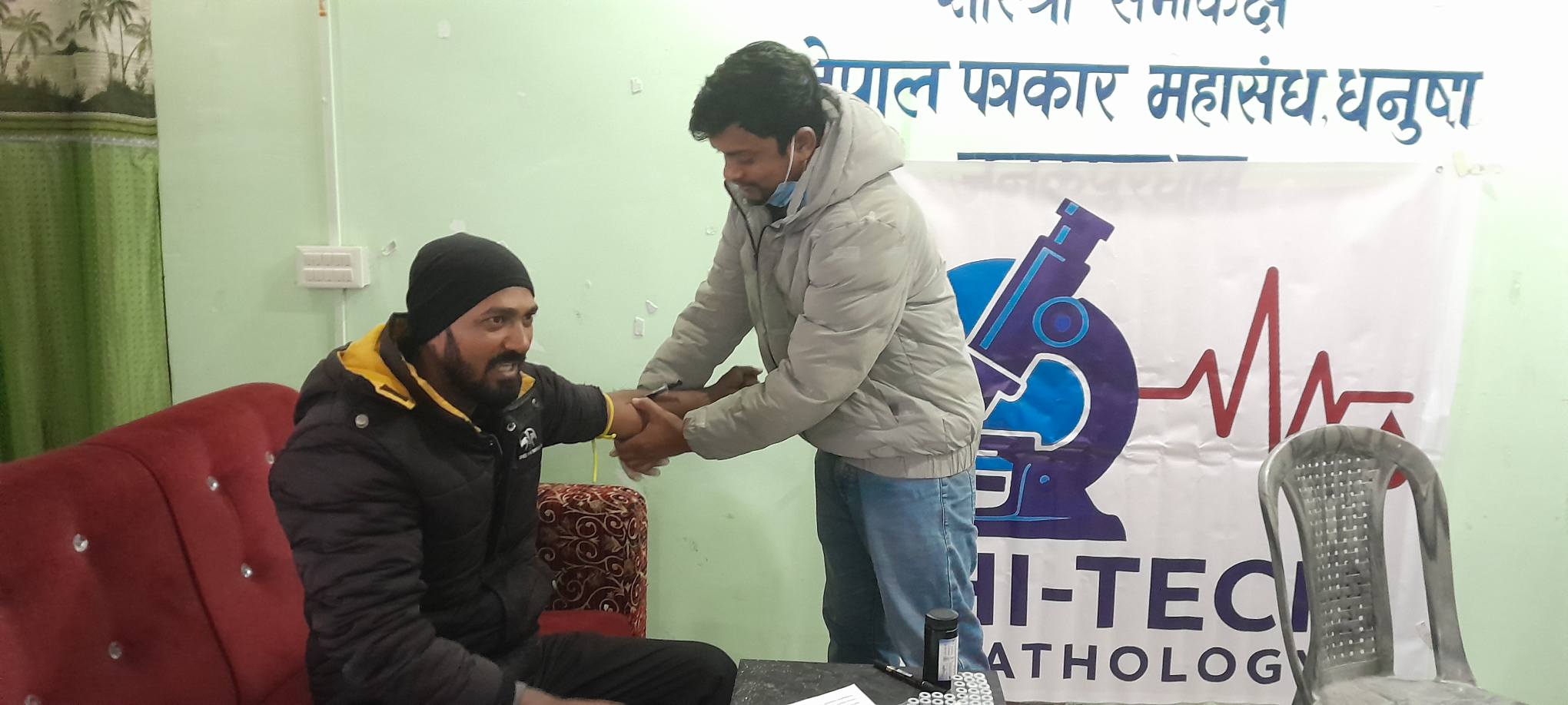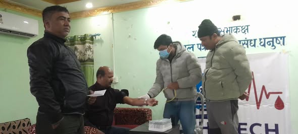 बिहान महासङ्घ धनुषा शाखाको कार्यालय परिसरमा आयोजित निशुल्क स्वास्थ्य परीक्षण कार्यक्रममा धनुषा जिल्लाका ५० जना पत्रकारहरूले निशुल्क स्वास्थ्य परीक्षण गराएका छन् । जनकपुरधामस्थित प्रादेशिक अस्पताल अगाडि रहेको हाइटेक प्याथोलोजी ल्याबको सहकार्यमा सम्पन्न कार्यक्रममा सहभागी पत्रकारहरूको रक्तचाप, मधुमेह, लिपिड प्रोफाइल तथा युरिन परीक्षण निशुल्क गरिएको थियो ।