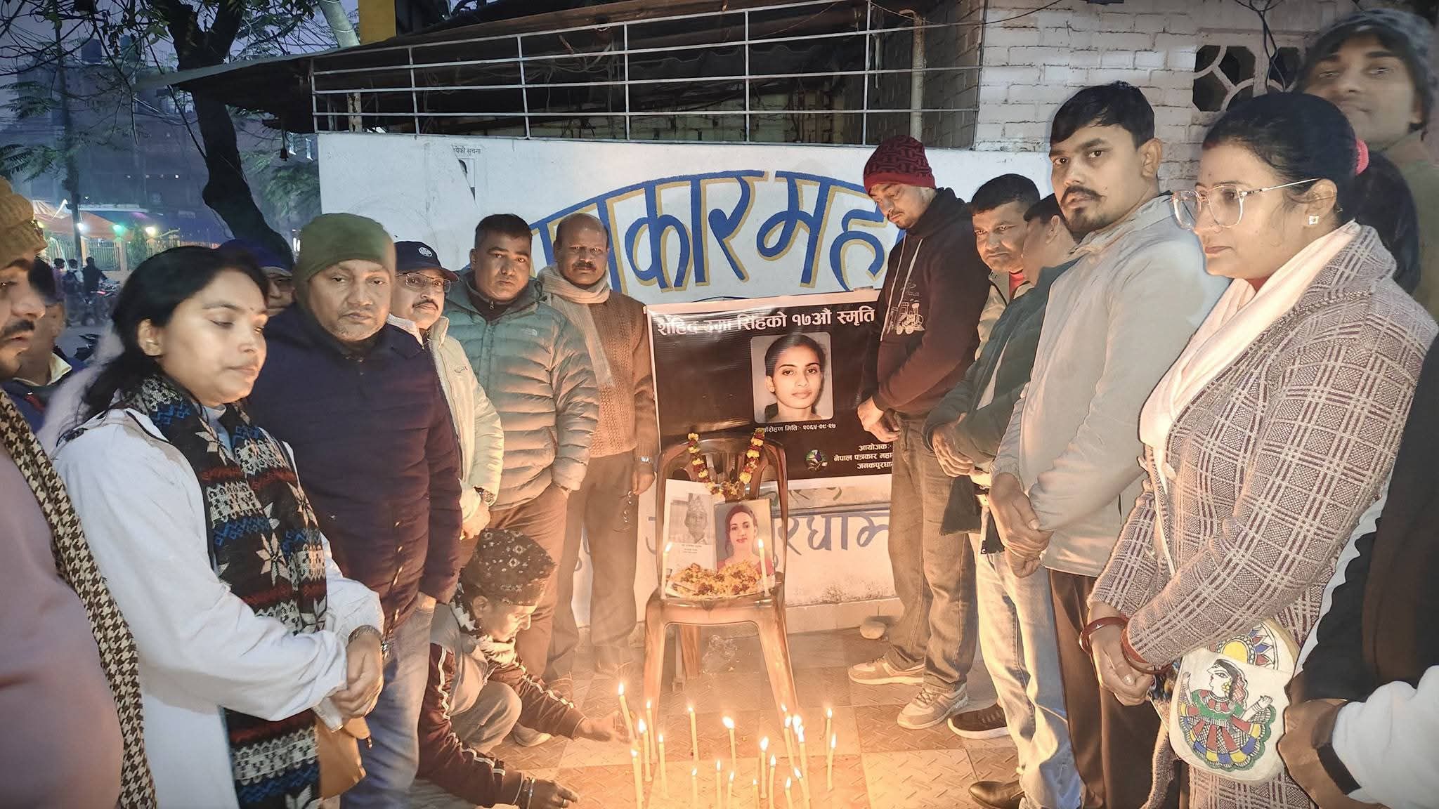 जनकपुरधाम, २७ पुष । नेपाल पत्रकार महासङ्घ धनुषा शाखाले शहिद पत्रकार उमा सिंहको १७औँ स्मृति दिवसका अवसरमा आइतबार दुईवटा महत्वपूर्ण कार्यक्रम सम्पन्न गरेको छ ।
