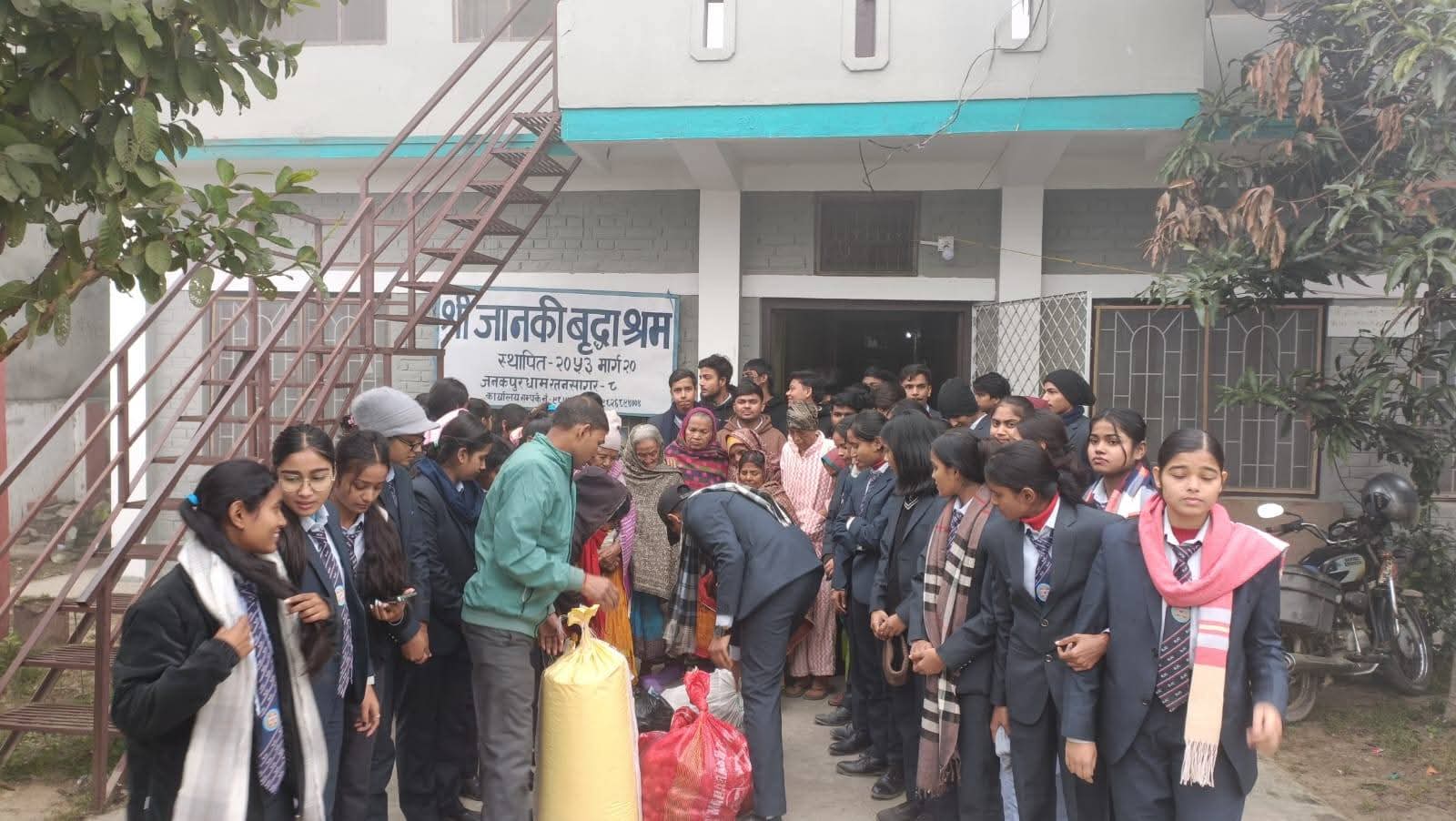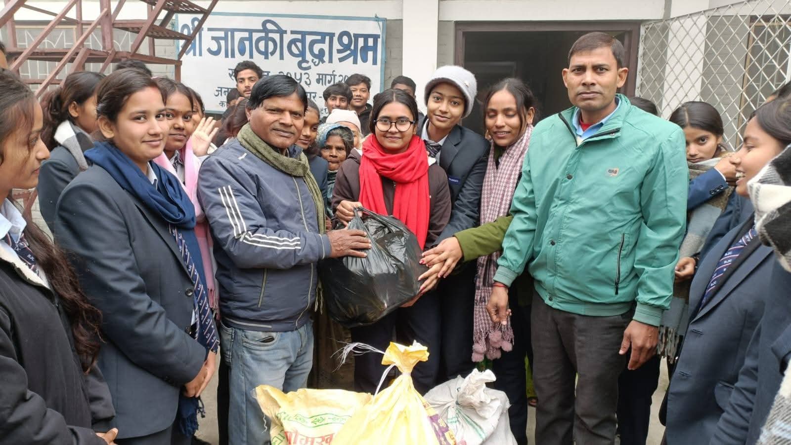 जनकपुरधाम, ५ माघ । राजर्षी जनक क्याम्पसका कक्षा ११ वाणिज्य संकाय सेक्शन ‘बी’ का विद्यार्थीहरूले मानवीय सेवाको उदाहरण प्रस्तुत गर्दै जानकी वृद्धा आश्रममा खाद्यान्न सामग्री वितरण गरेका छन् ।