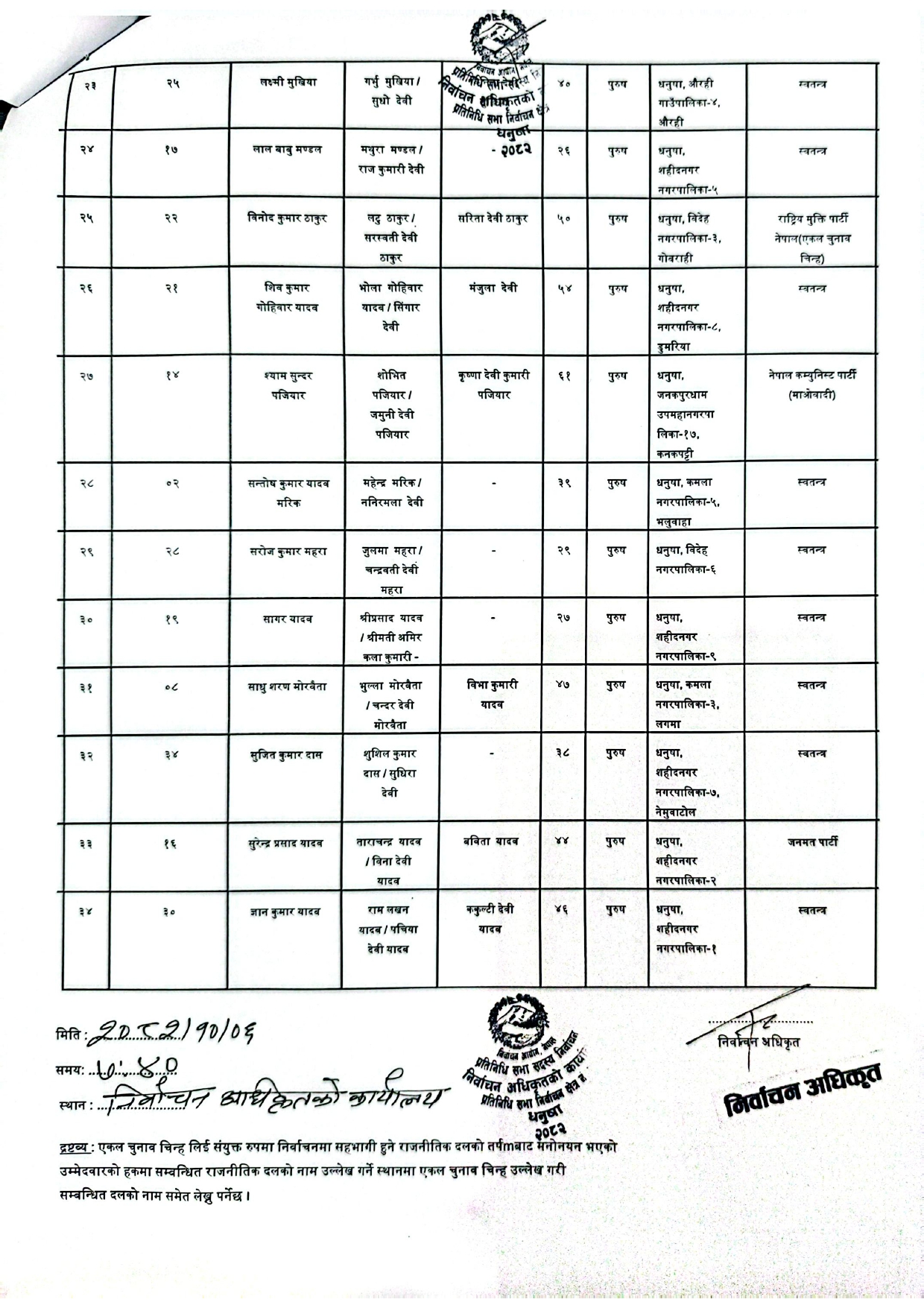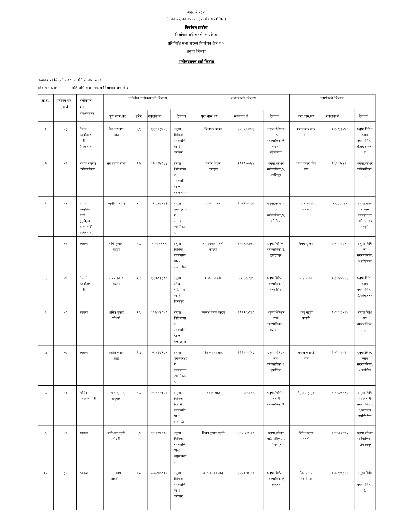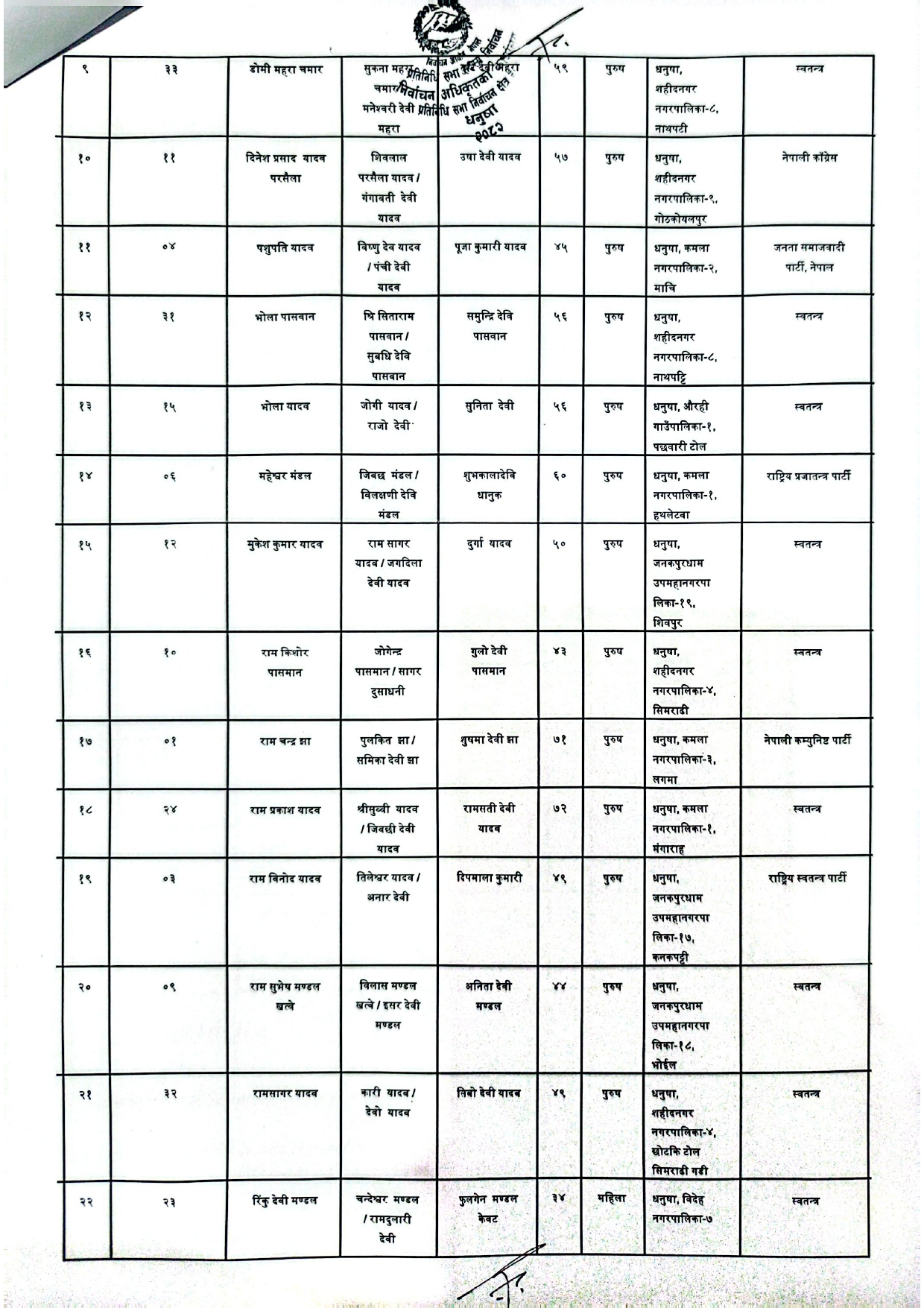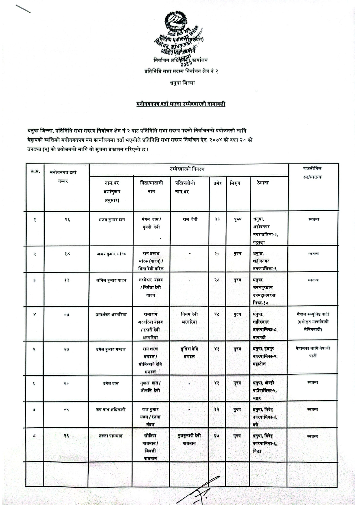 धनुषामा १५८ जनाको उम्मेदवारी दर्ता (नामावलीसहित)
