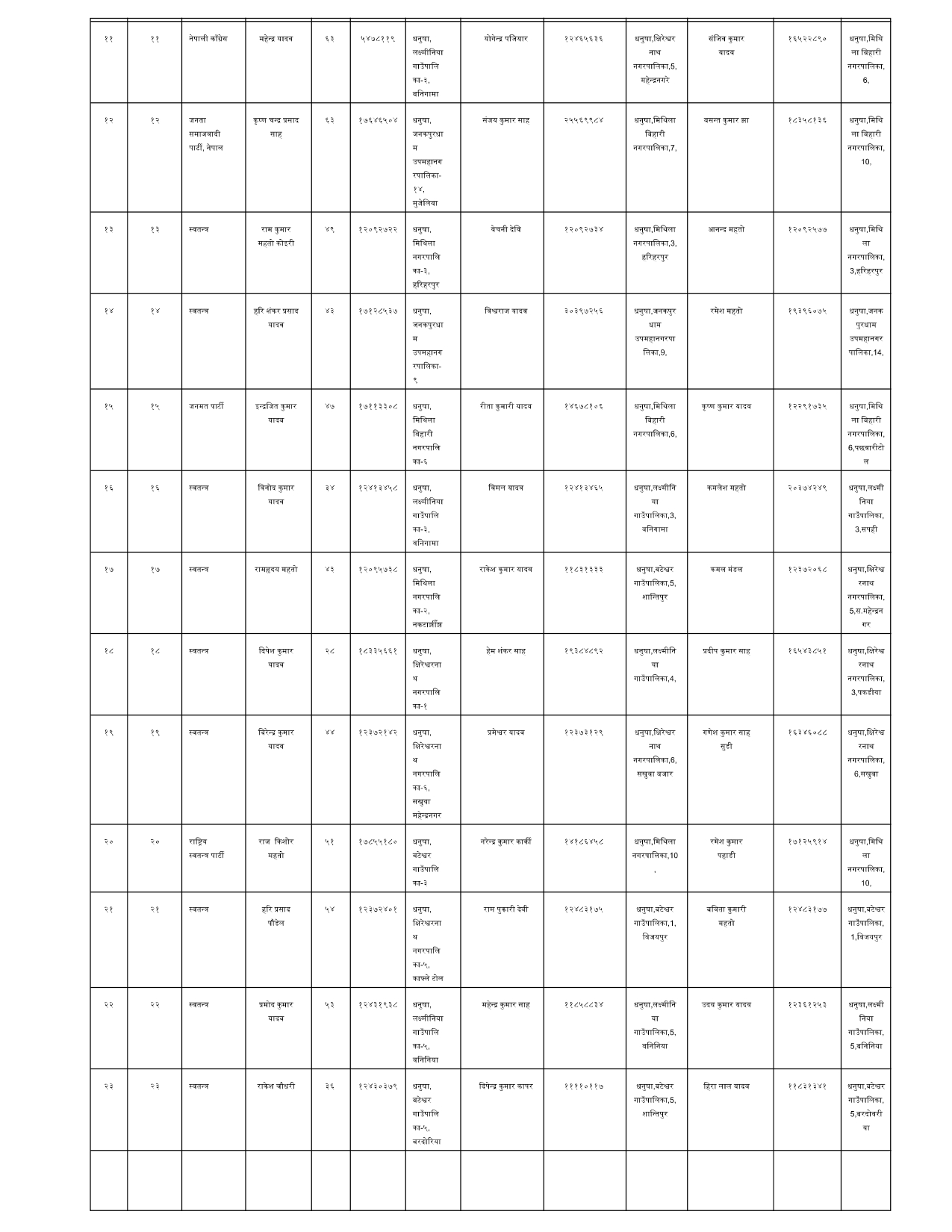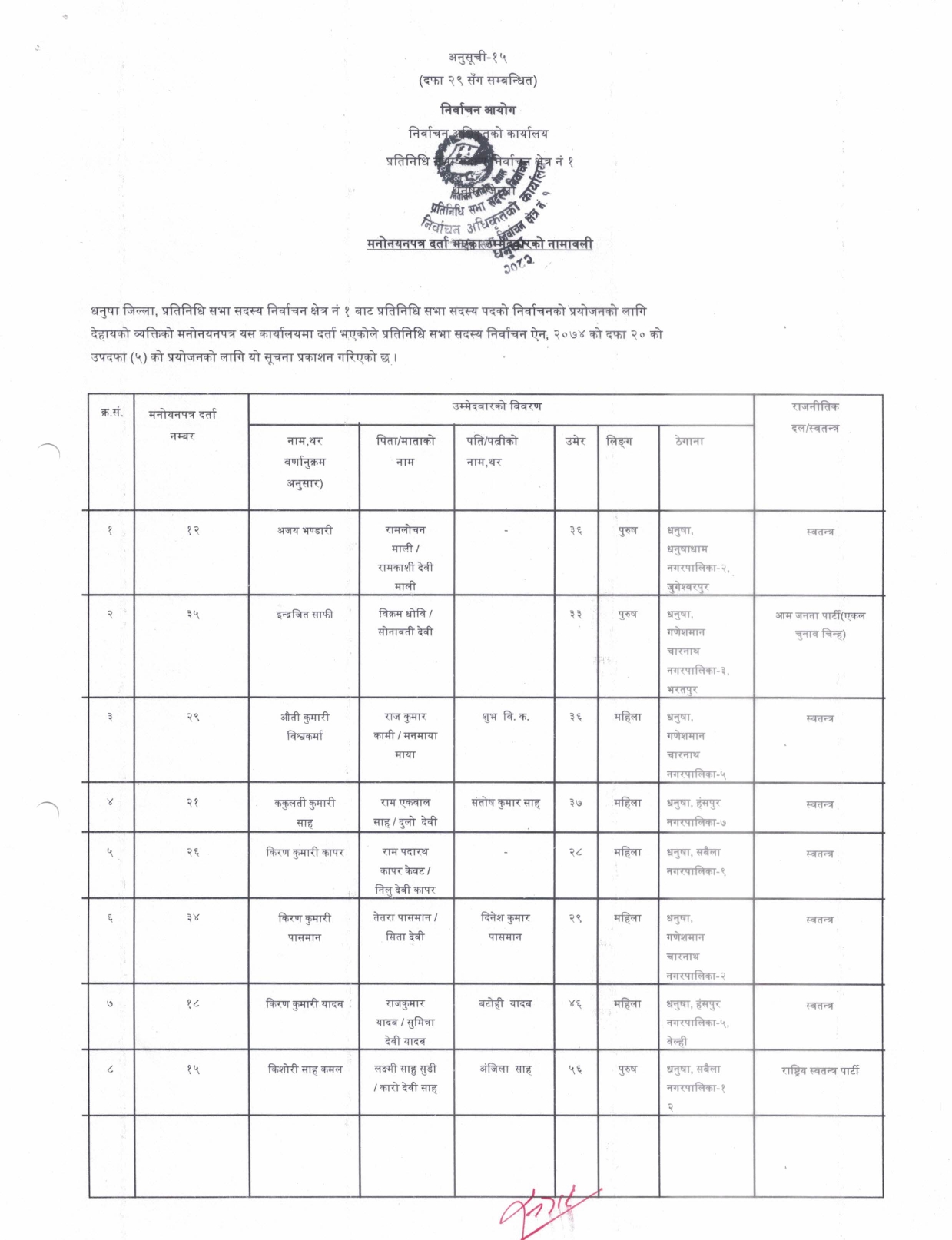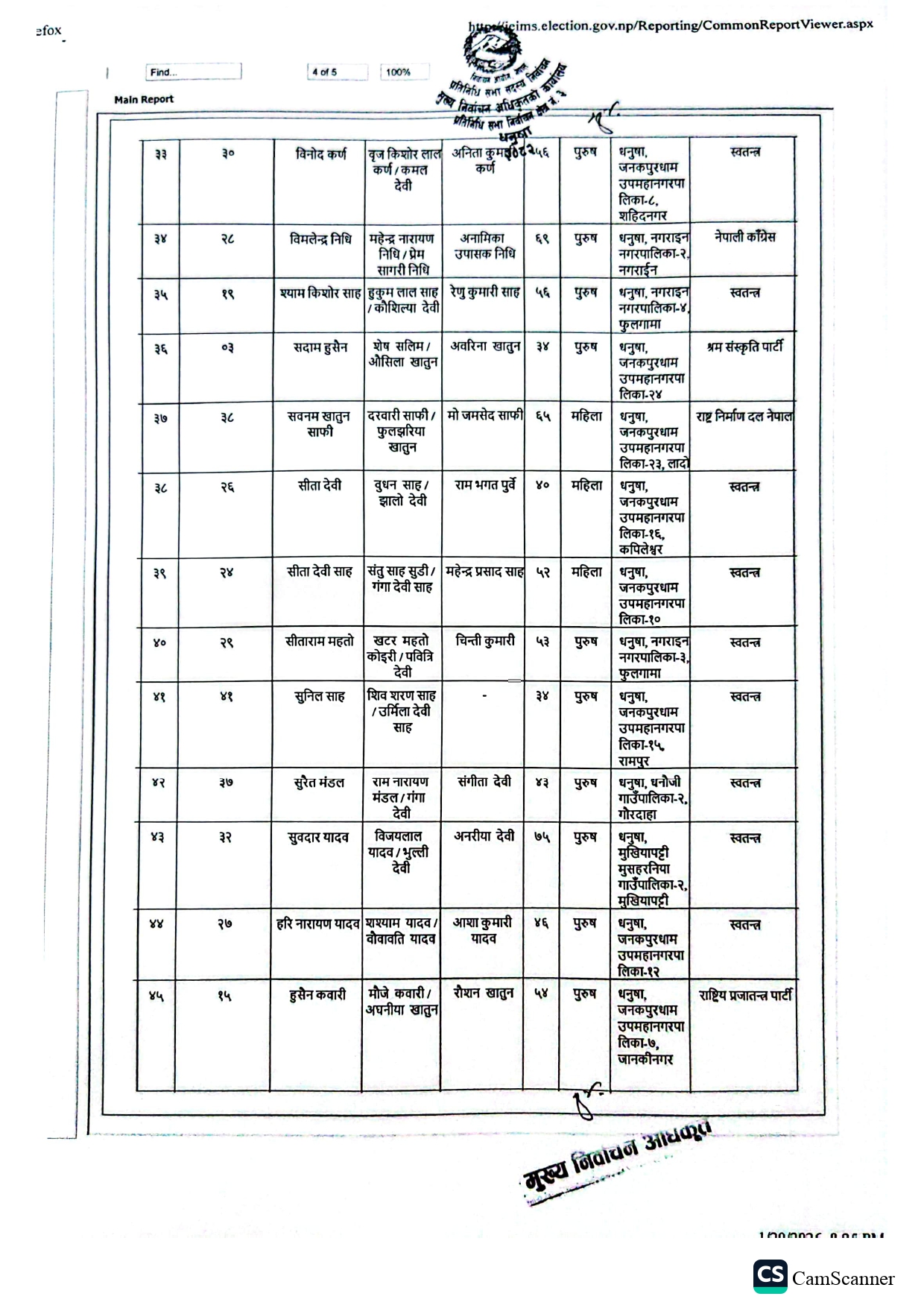 धनुषामा १५८ जनाको उम्मेदवारी दर्ता (नामावलीसहित)