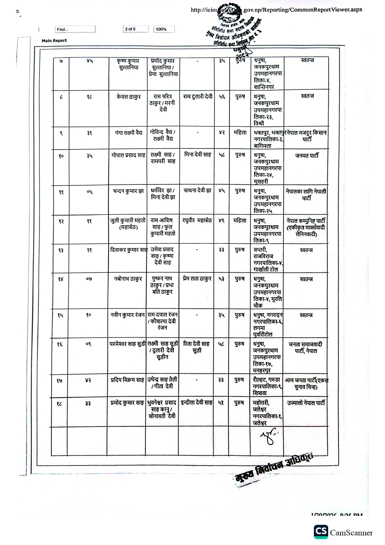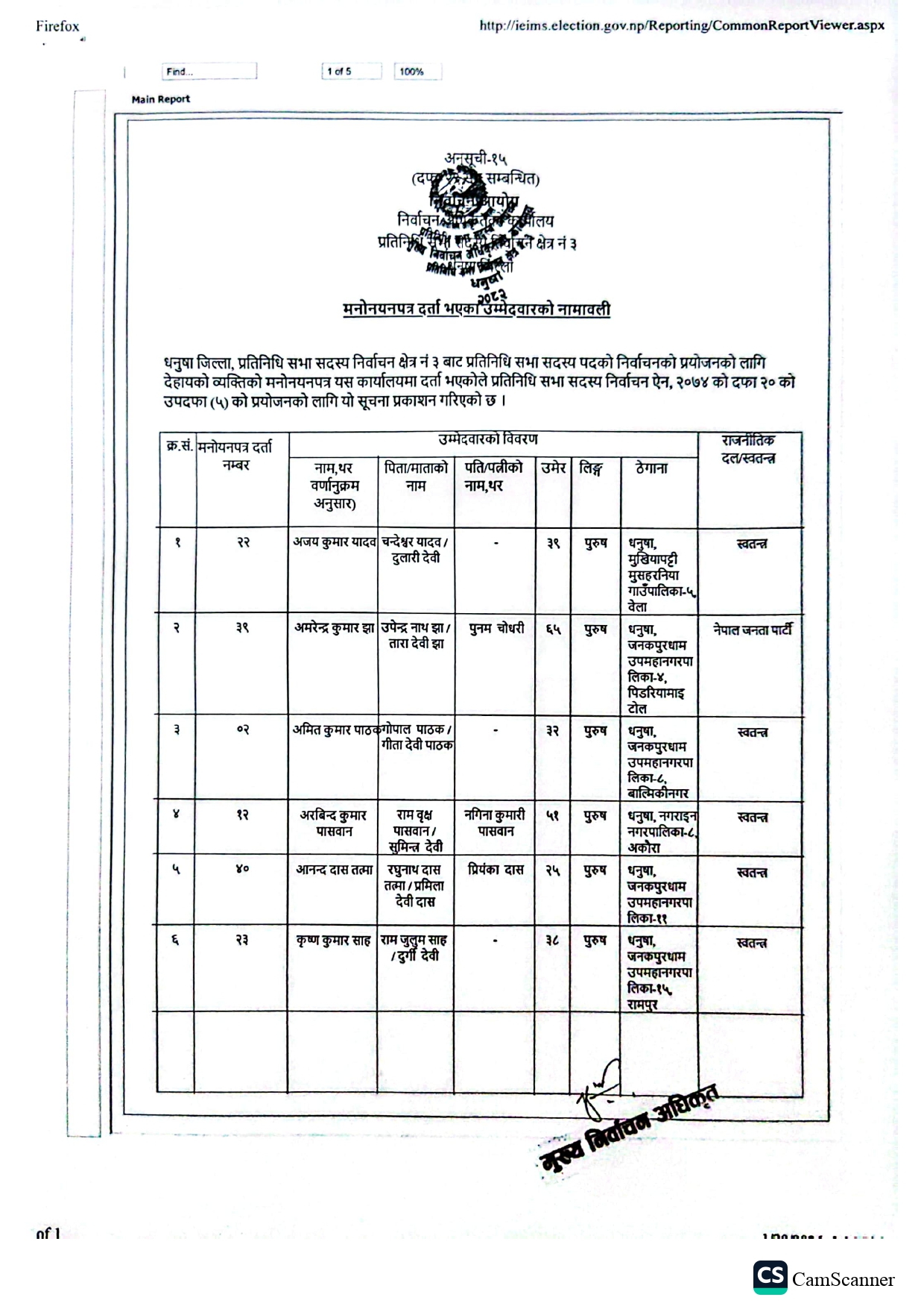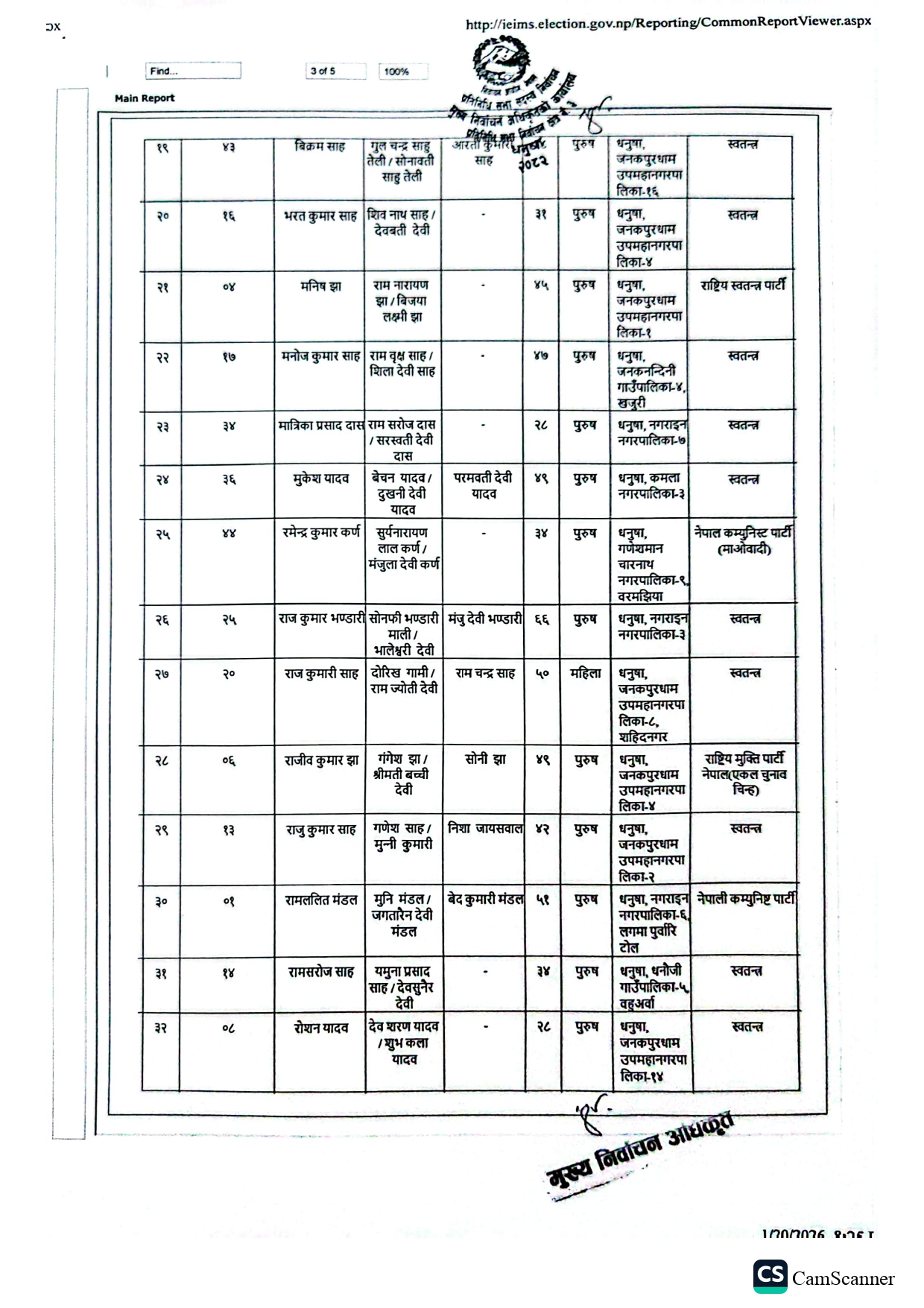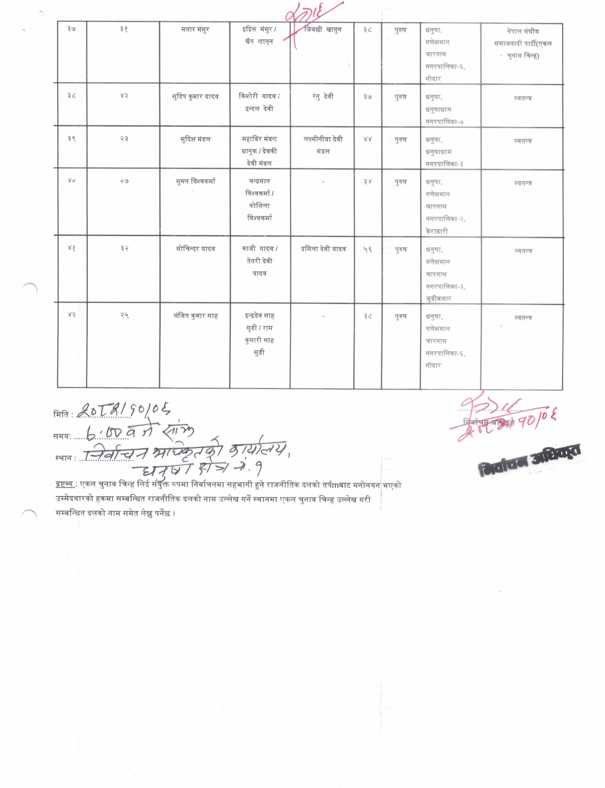 धनुषामा १५८ जनाको उम्मेदवारी दर्ता (नामावलीसहित)