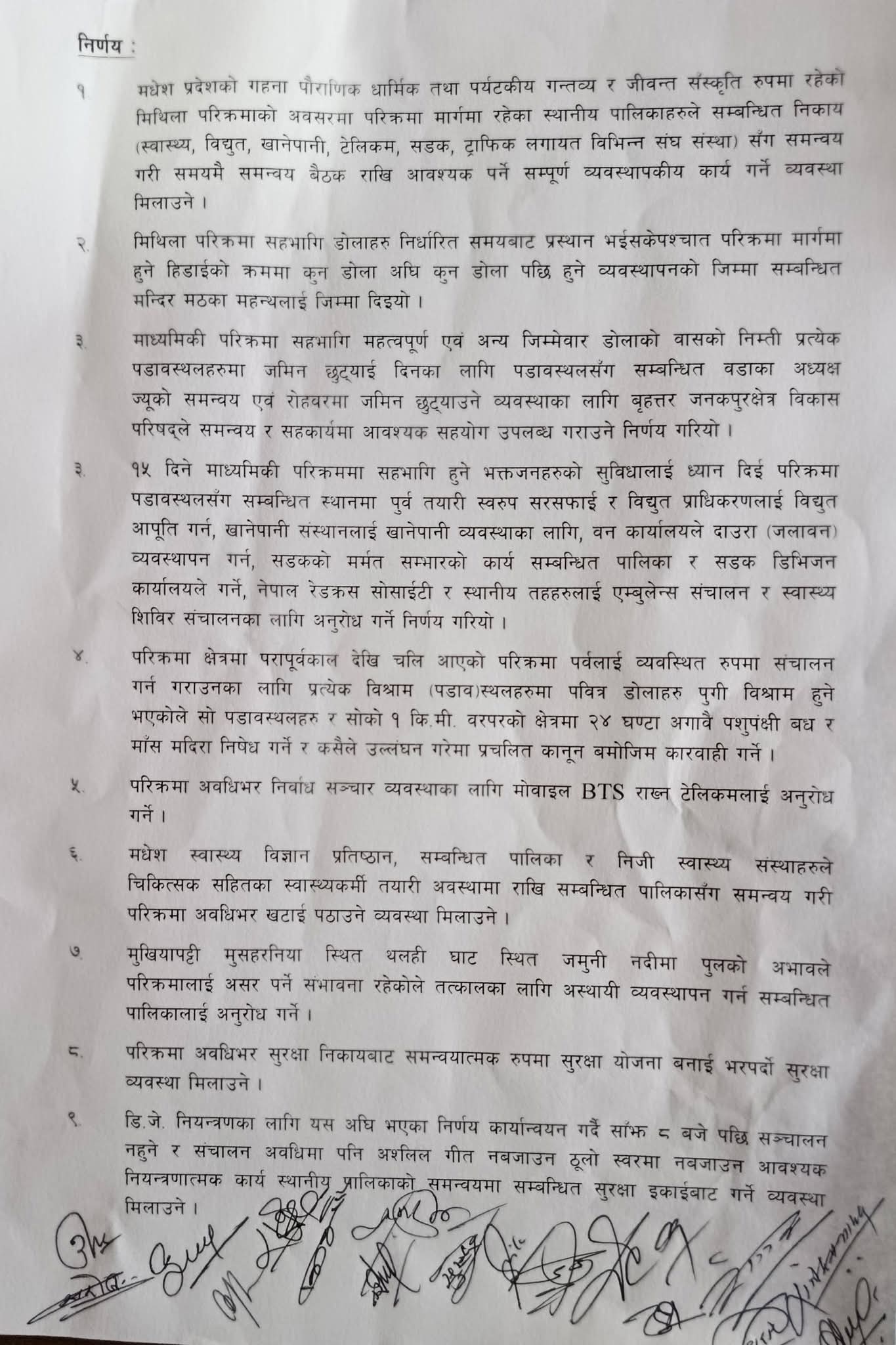मिथिला परिक्रमा व्यवस्थित बनाउन व्यापक तयारी, १५ दिने यात्राका लागि विशेष सुरक्षा र सेवा व्यवस्था