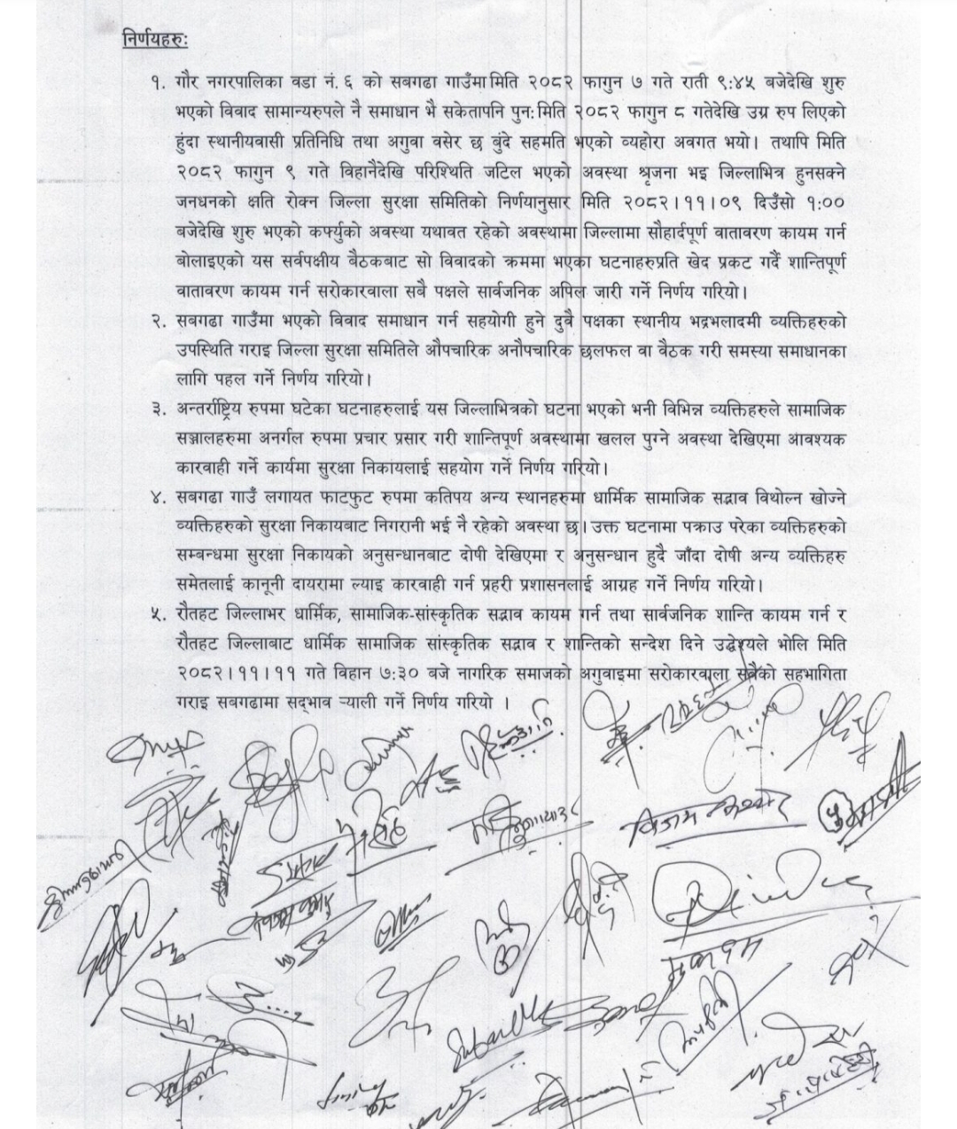 सामाजिक तथा धार्मिक सद्भाव बिथोल्ने गतिविधिमा संलग्न व्यक्तिमाथि कानुनी कारबाही गर्ने निर्णयसमेत गरिएको छ ।