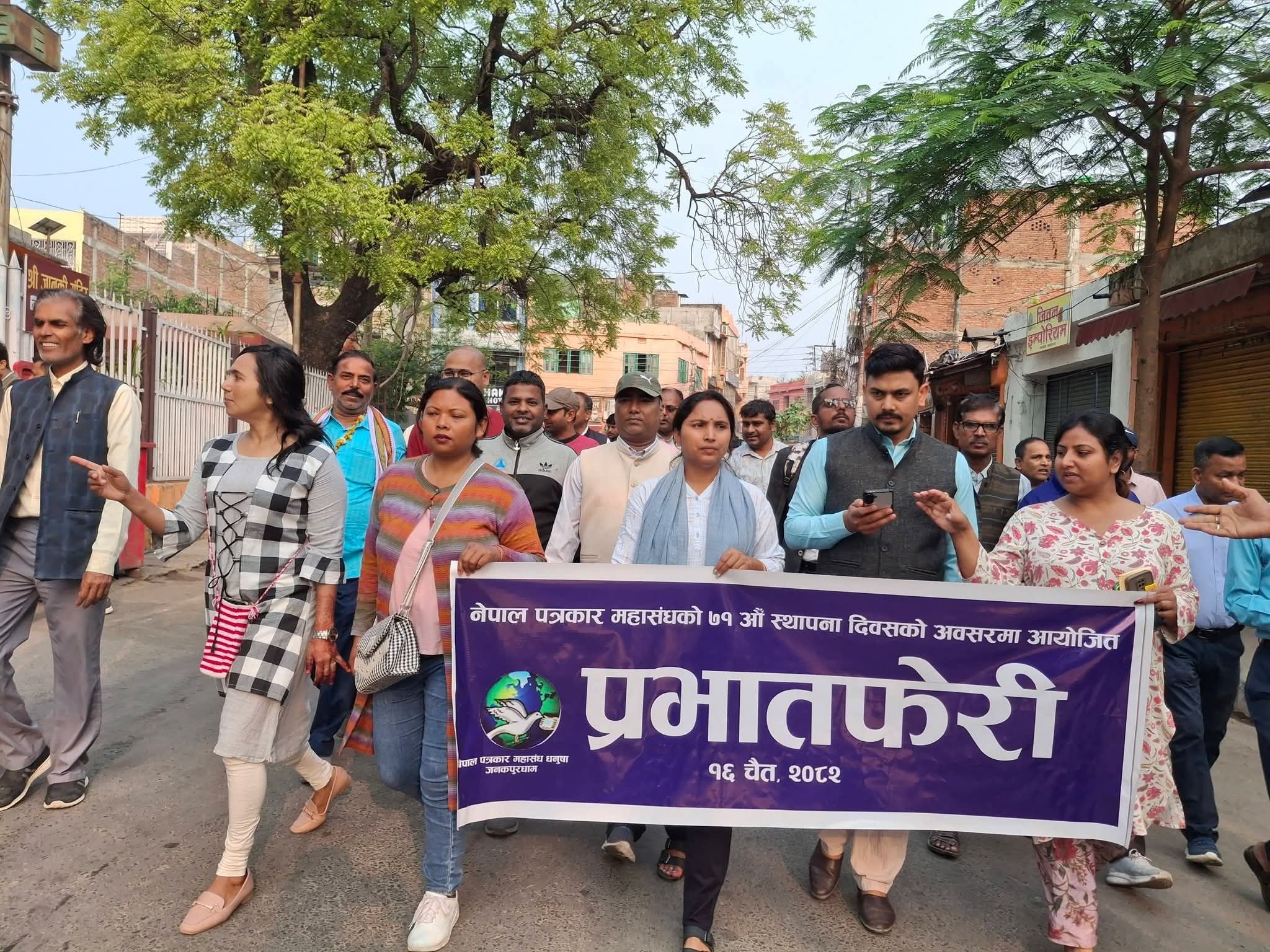 ७१औँ स्थापना दिवसमा पत्रकार महासंघको देशव्यापी कार्यक्रम, धनुषामा प्रभातफेरी