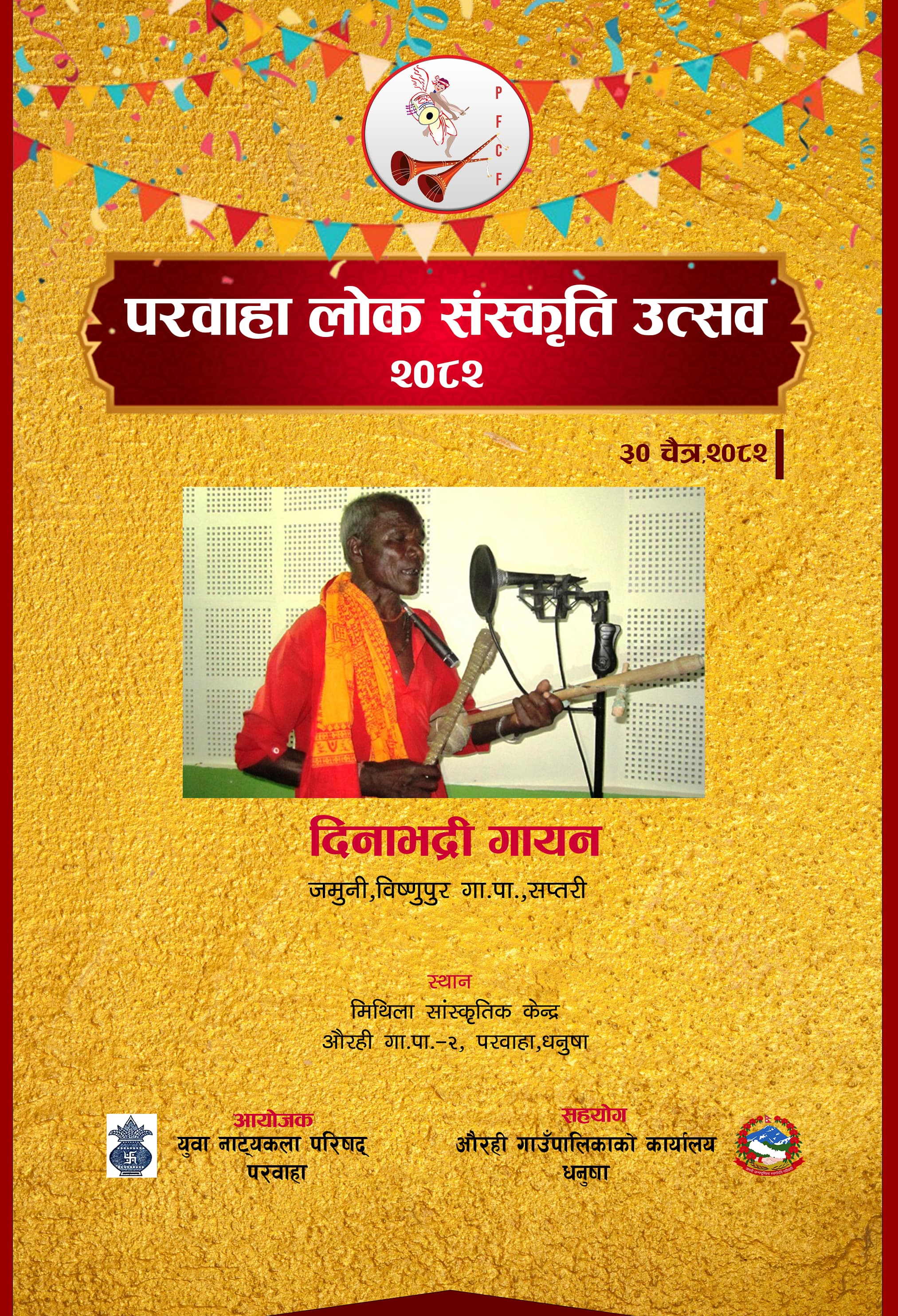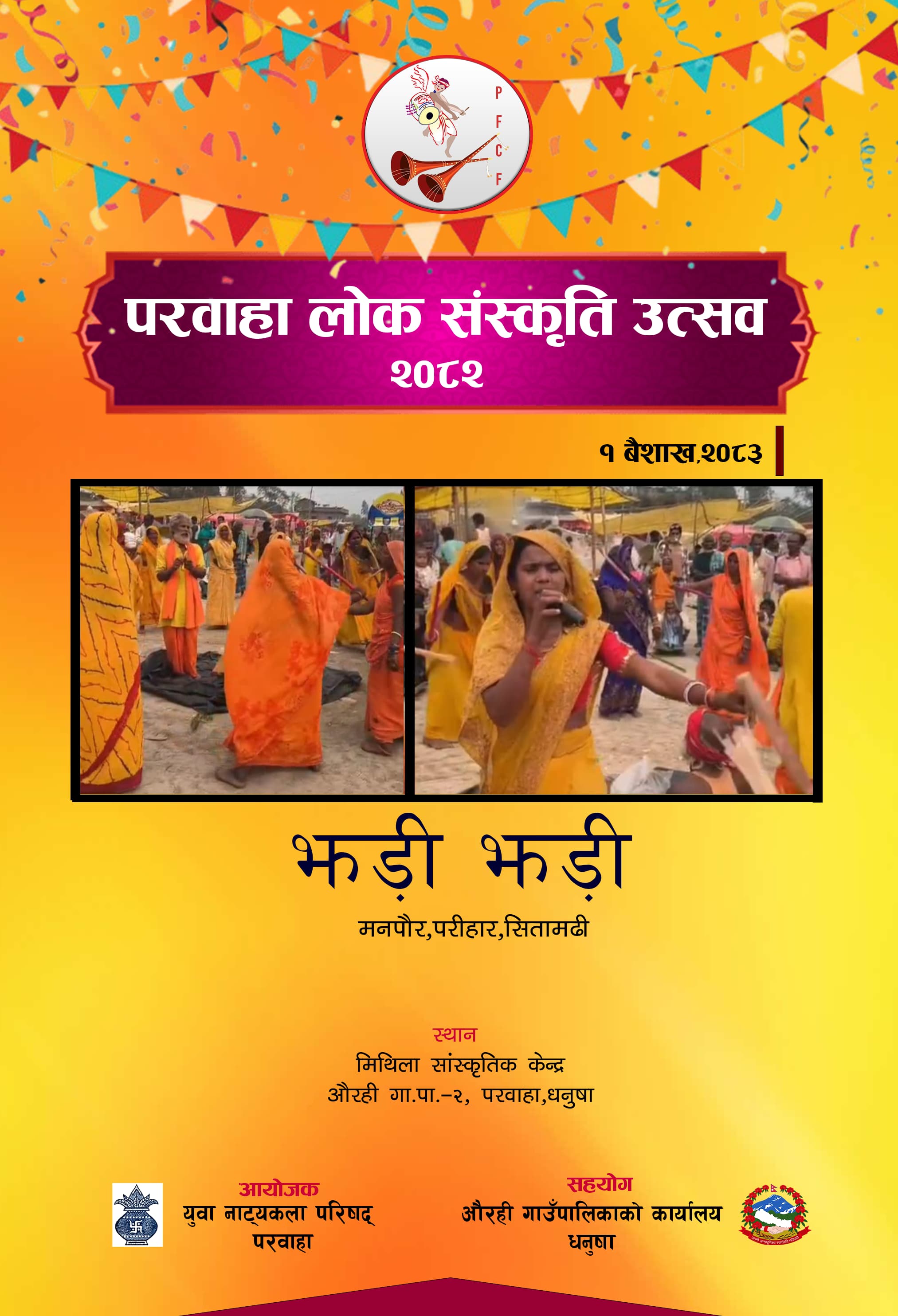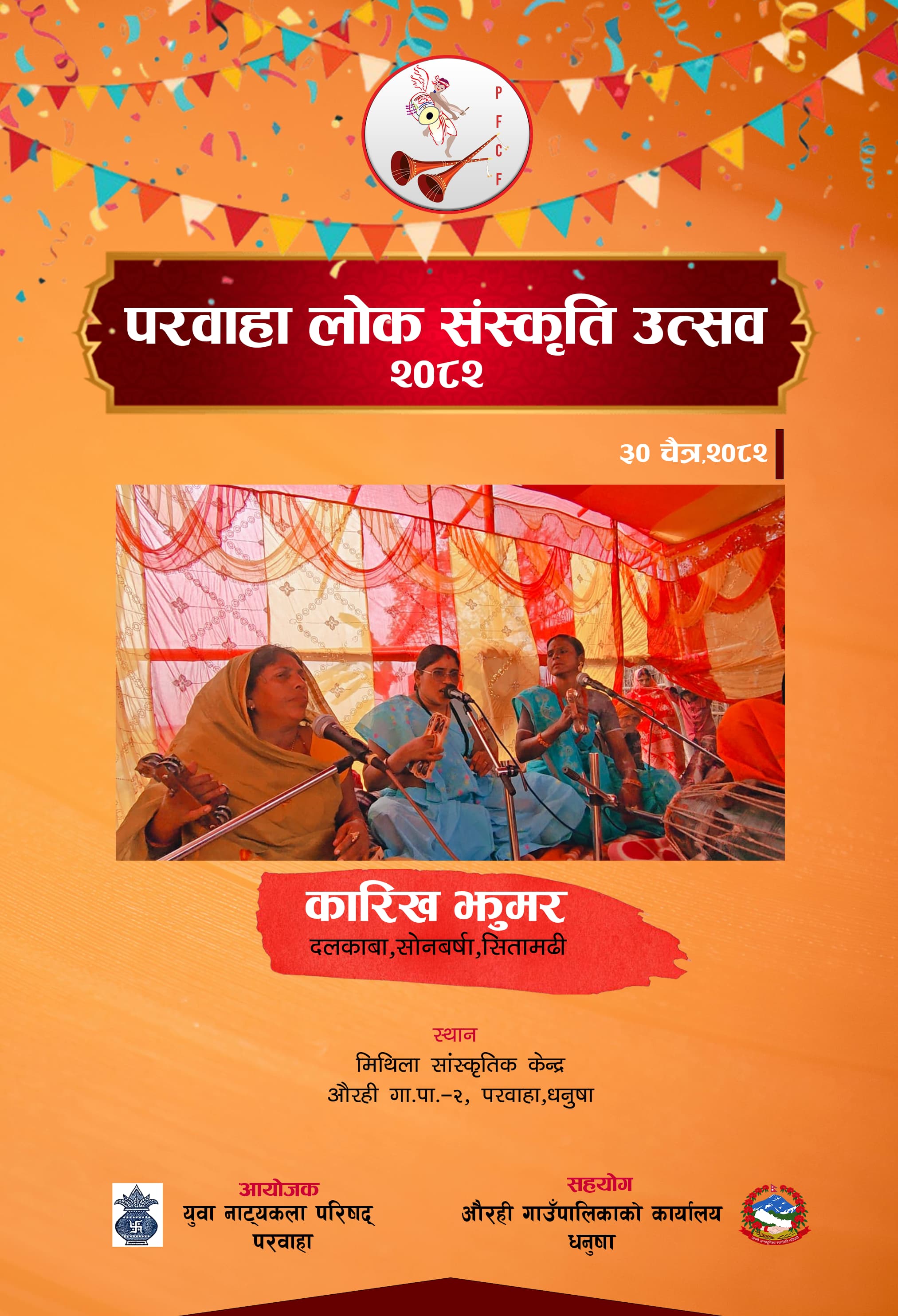 जनकपुरधाम, २६ चैत । धनुषाको औरही गाउँपालिका–२ परवाहामा स्थानीय लोक संस्कृतिको संरक्षण, प्रवर्द्धन तथा पुस्तान्तरण गर्ने उद्देश्यले दुई दिने ‘परवाहा लोक संस्कृति उत्सव २०८२’ आयोजना हुने भएको छ ।