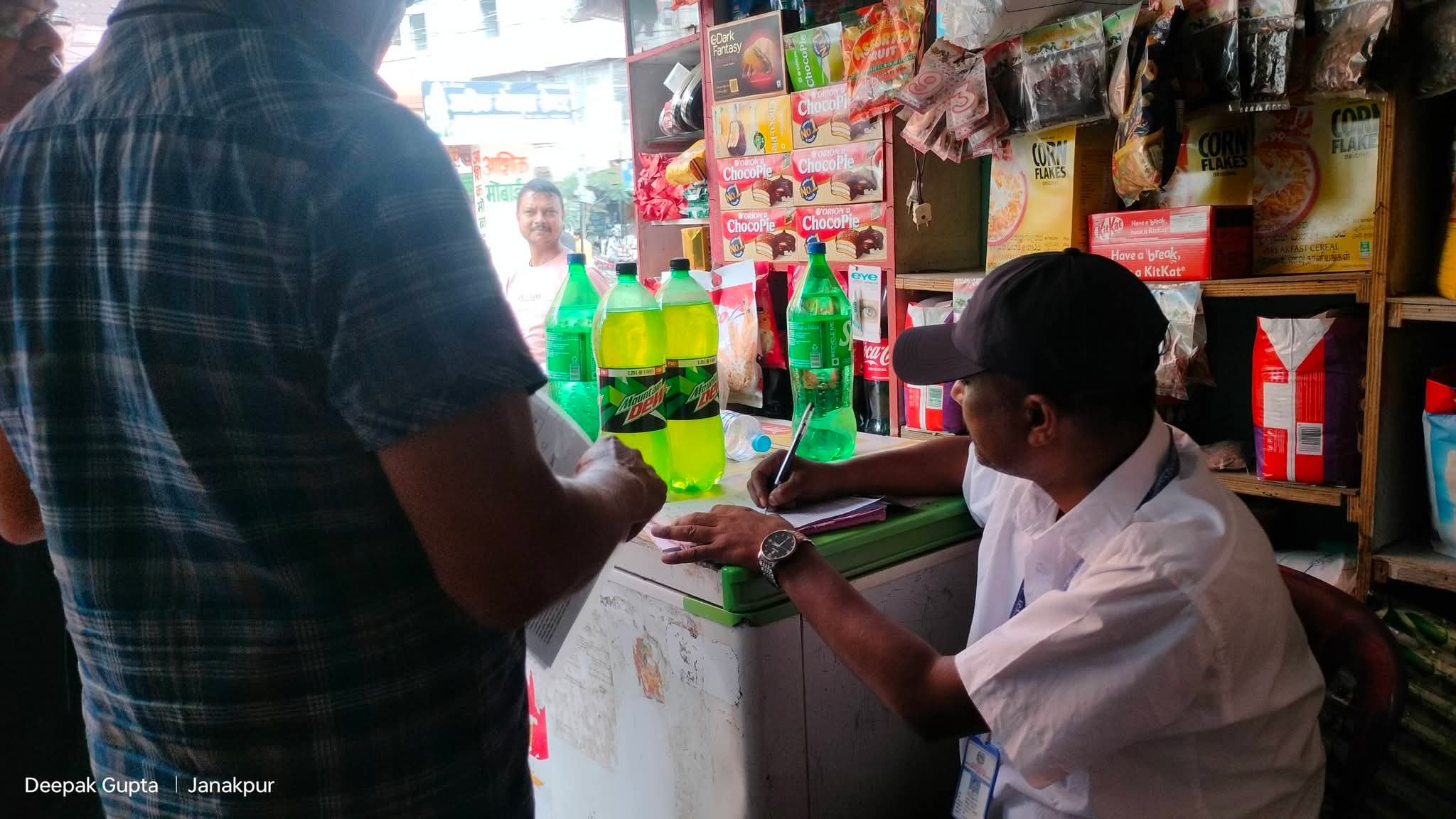 जनकपुरधामका पसलमा भारतीय पेय पदार्थको गुणस्तर जाँच