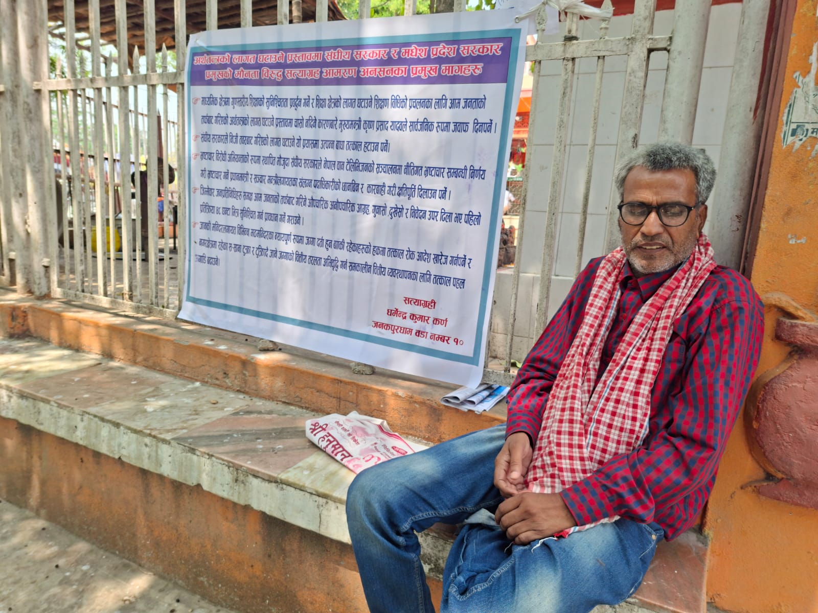 जनक चोकस्थित जनक मन्दिर अगाडि सत्याग्रहमा बसेका कर्णले पाँच बुँदे माग सार्वजनिक गर्दै संघीय तथा प्रदेश सरकारको ध्यानाकर्षण गराएका हुन् ।